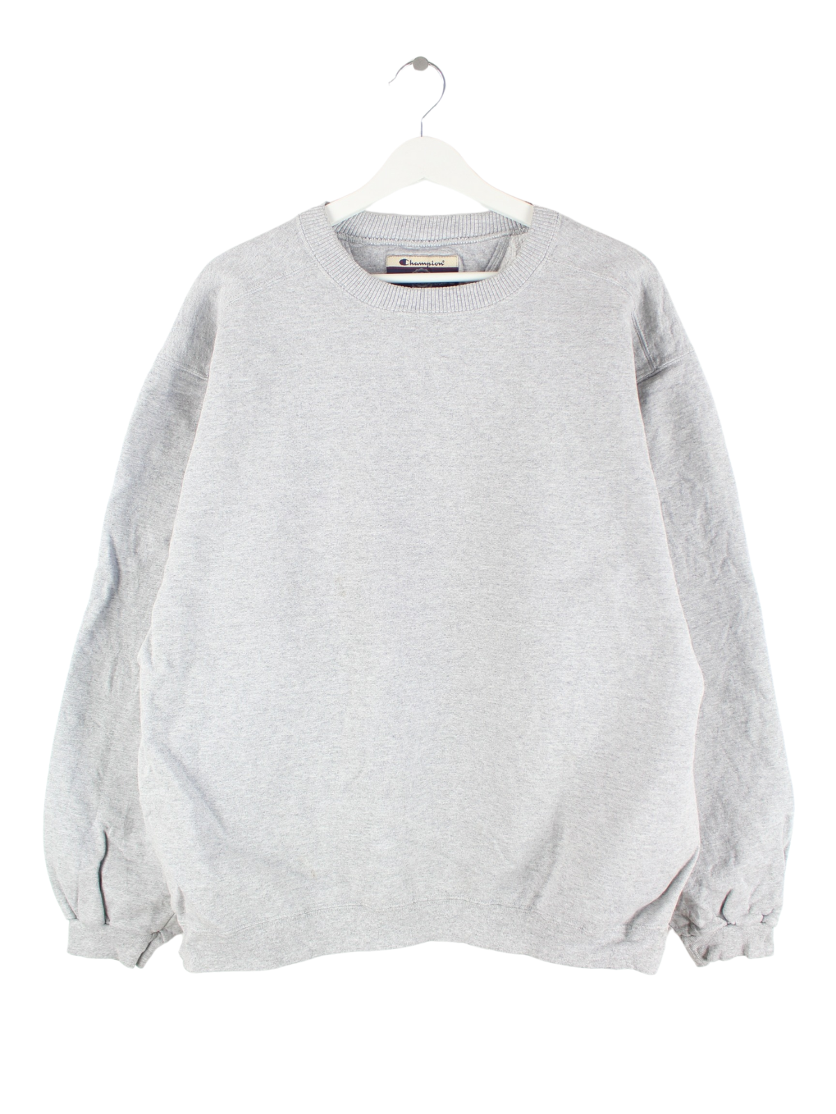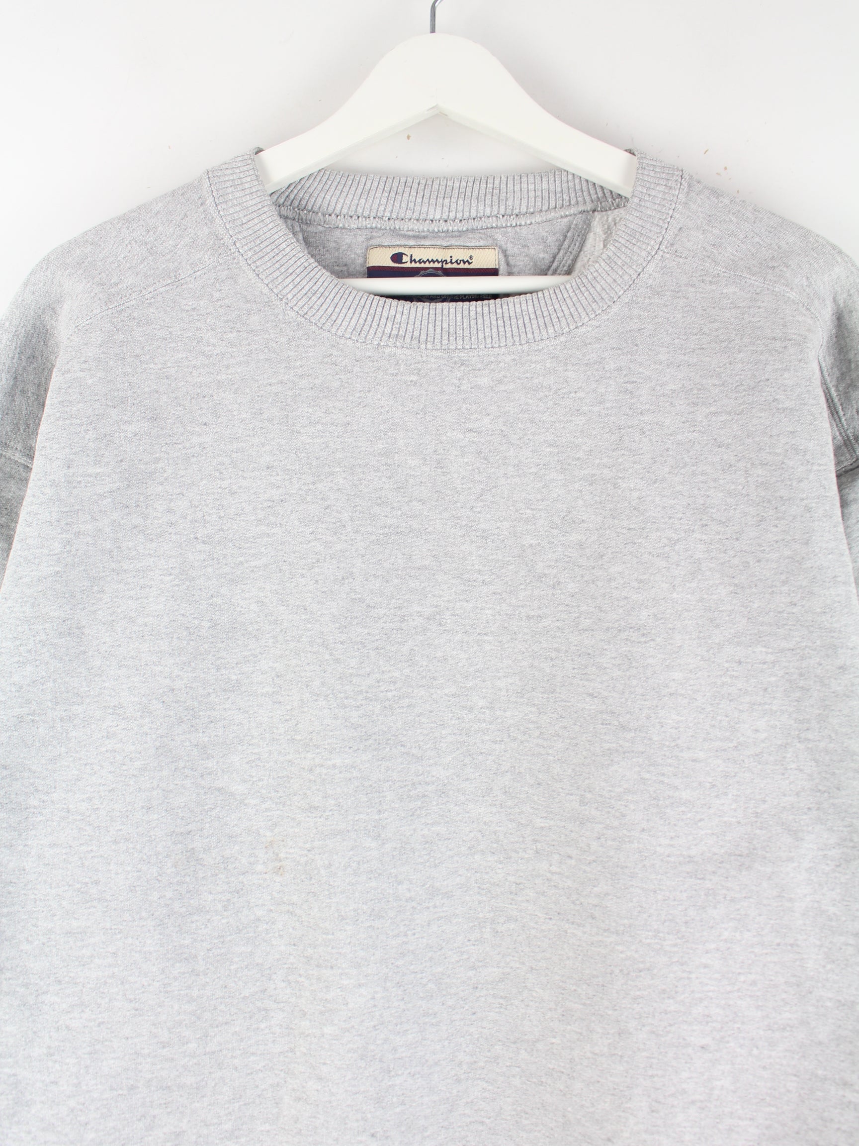Grauer Sweater des Labels Champion in Größe M. Er ist aus einer Baumwollmischung gefertigt und in gutem Zustand zu haben.