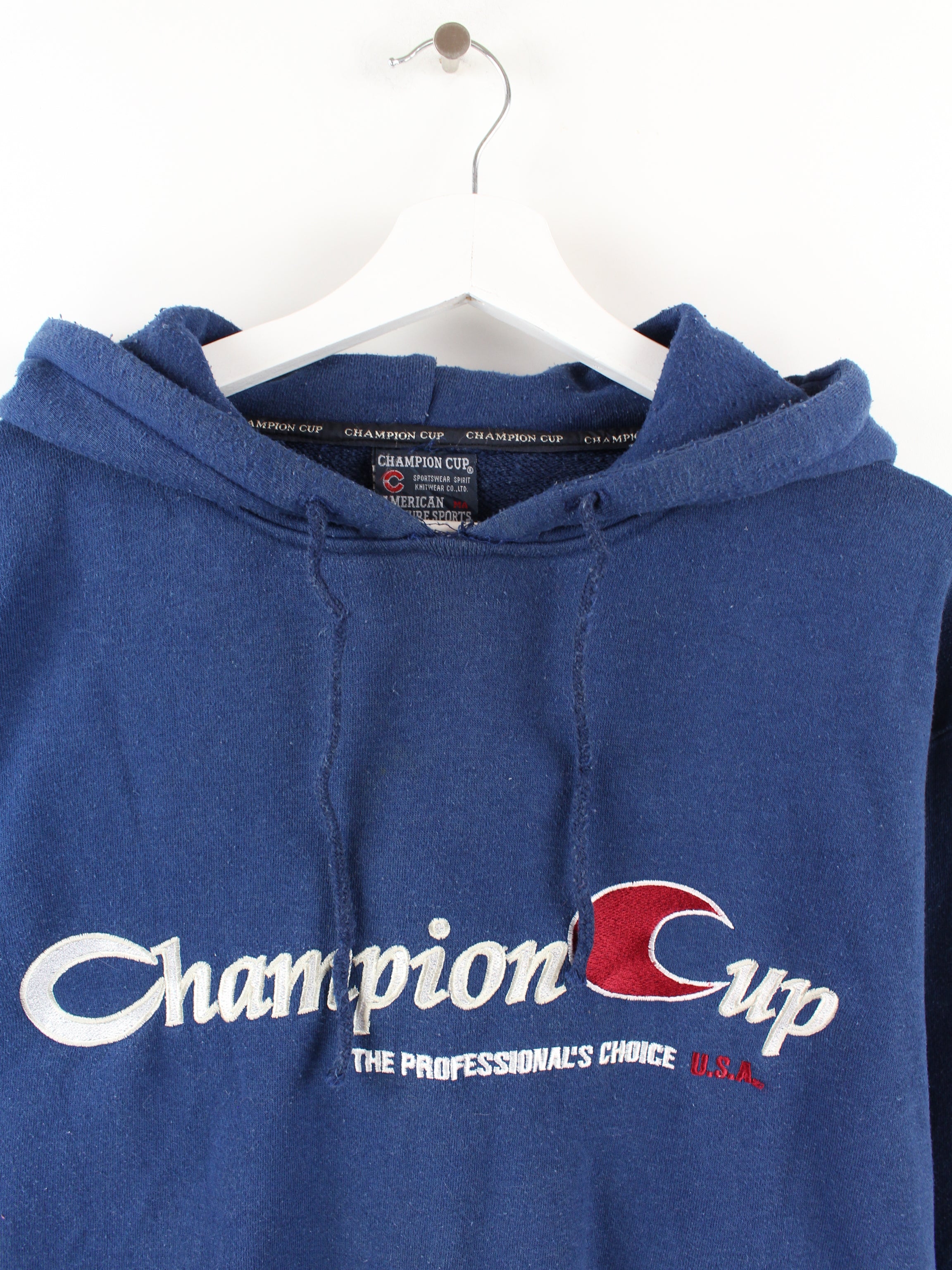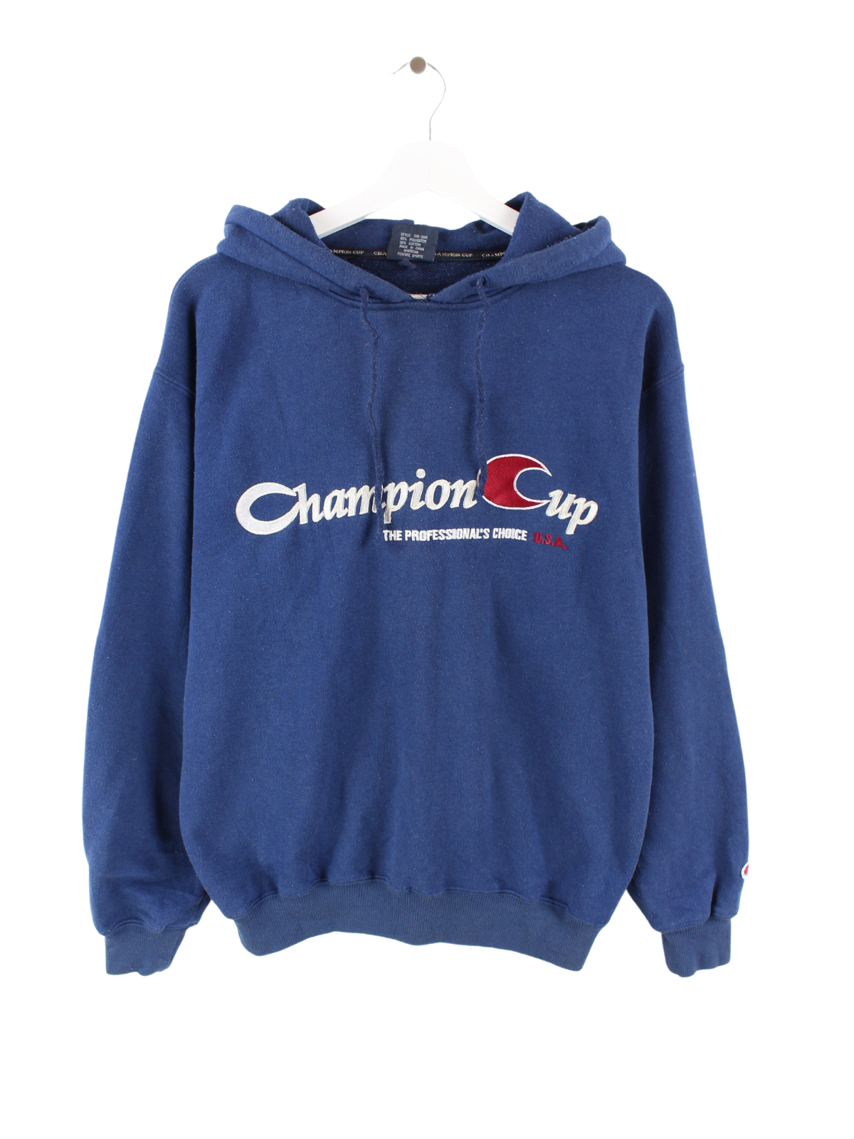 Sweat à capuche Champion Cup bleu brodé vintage.