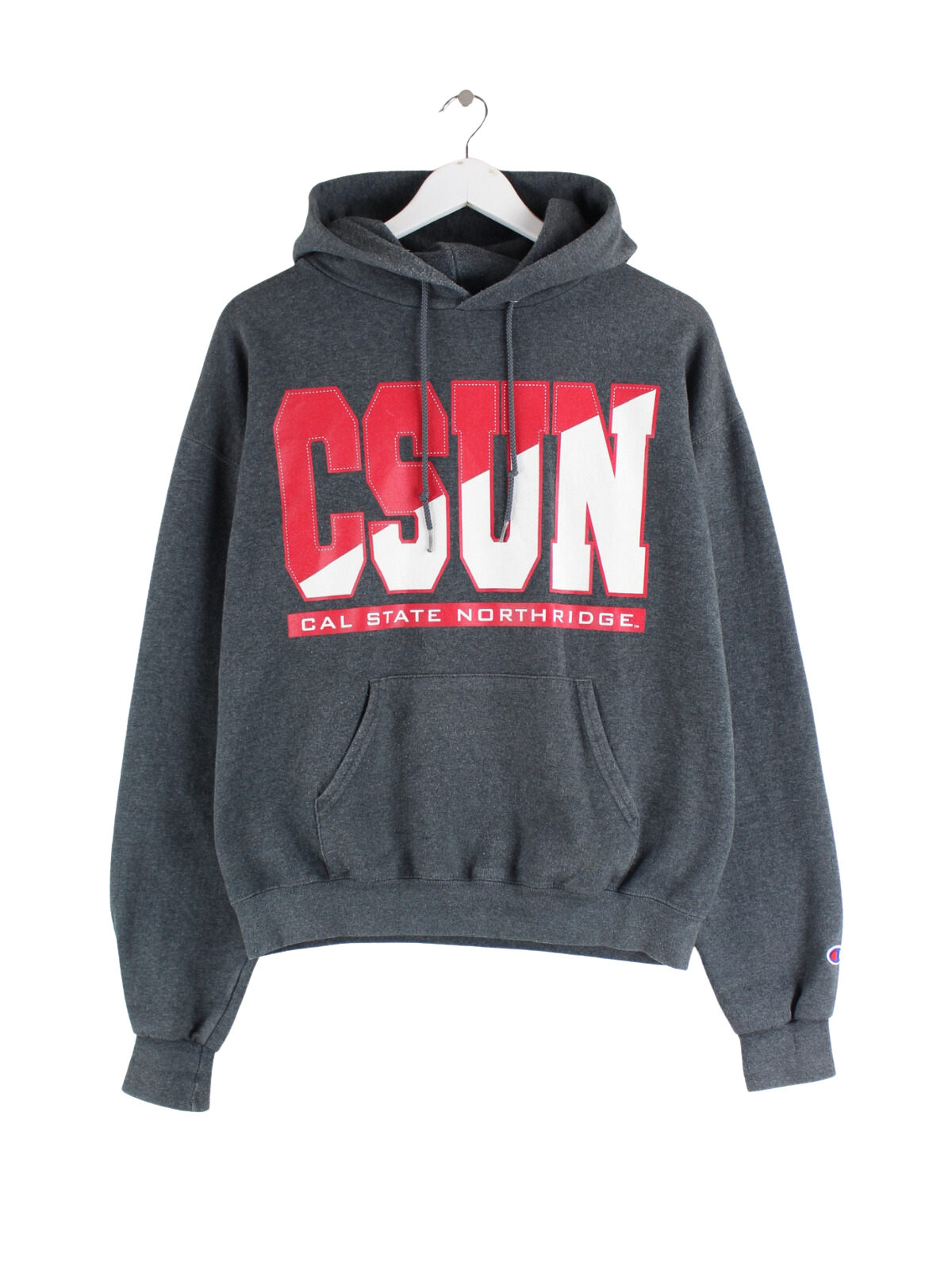 Grauer Hoodie der Marke Champion in Größe M. Er ist aus einer Baumwollmischung gefertigt und in gutem Zustand zu bekommen. Mit seltenem University Print.
