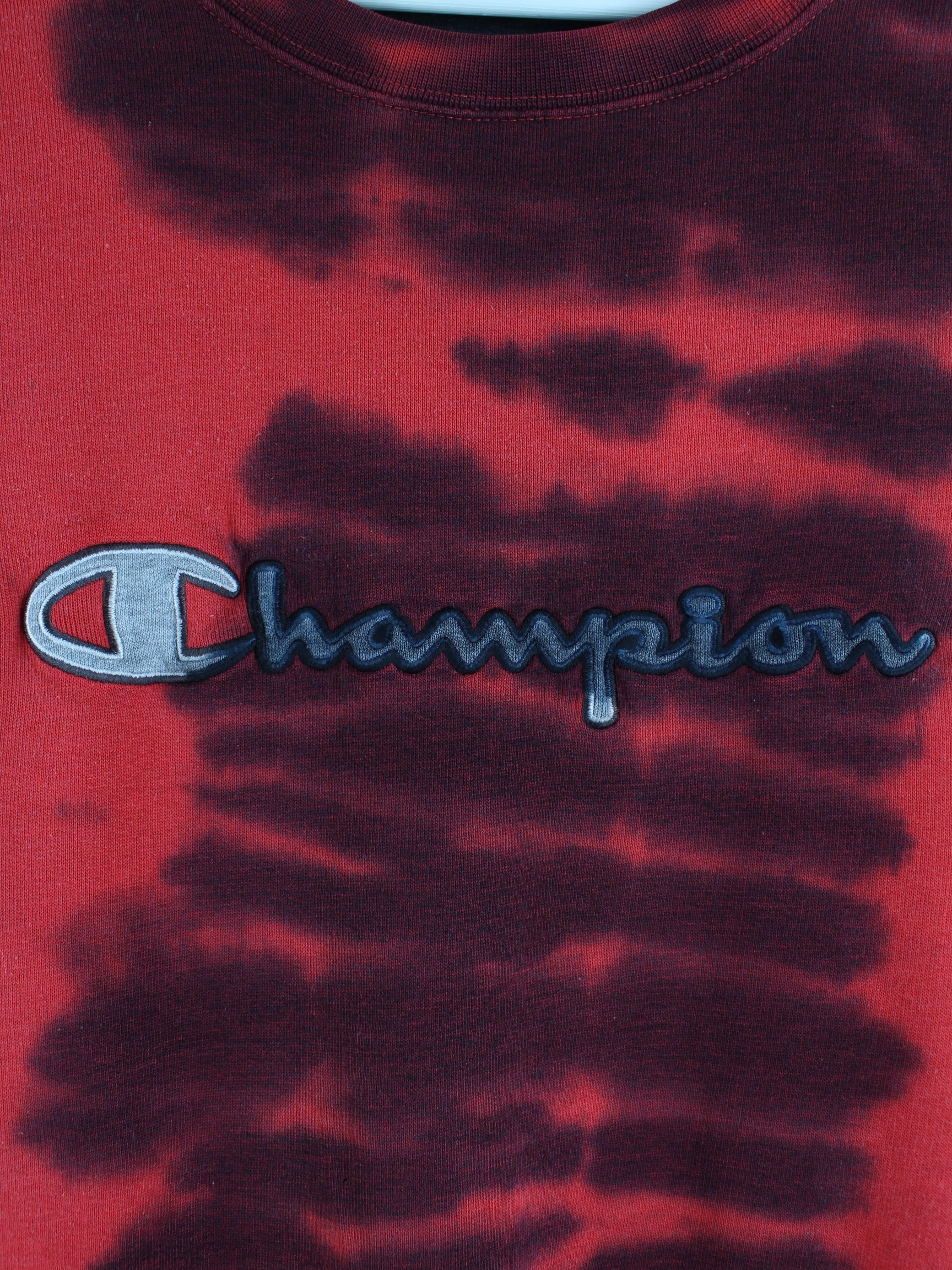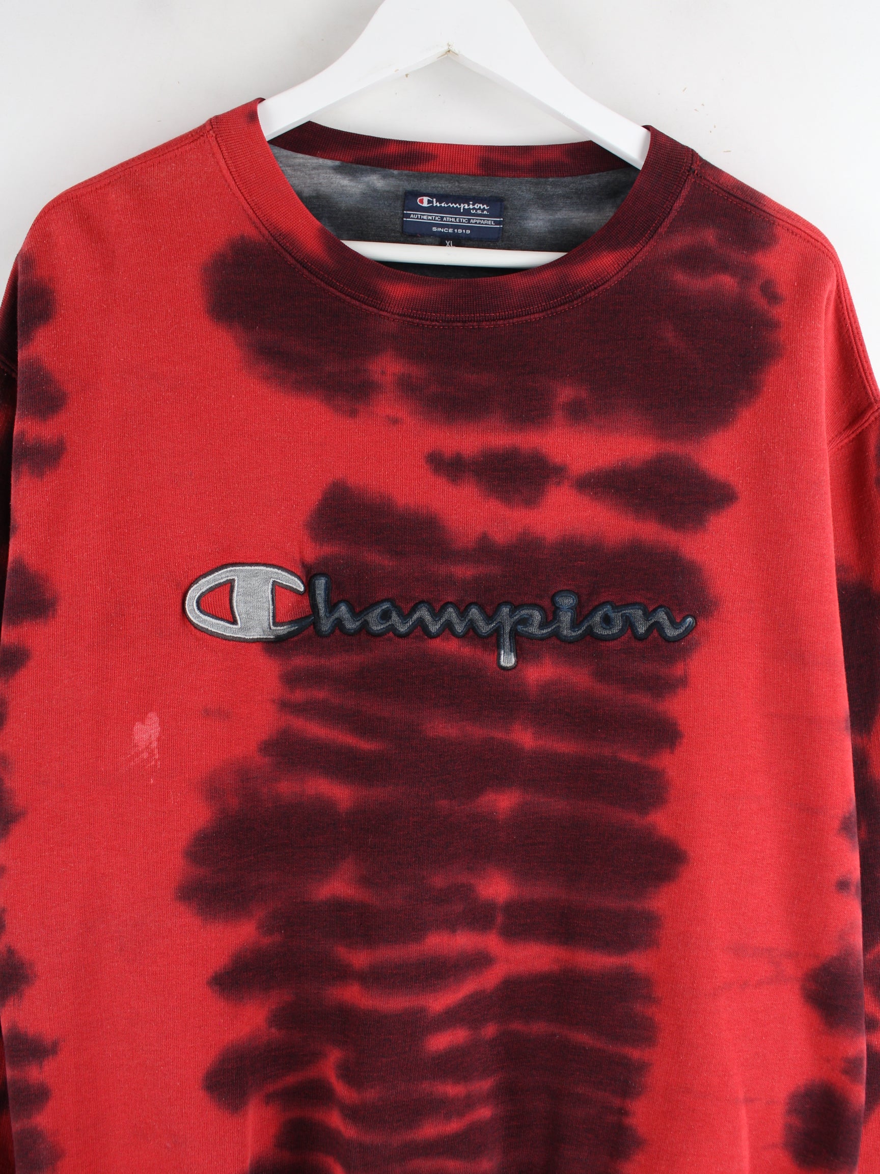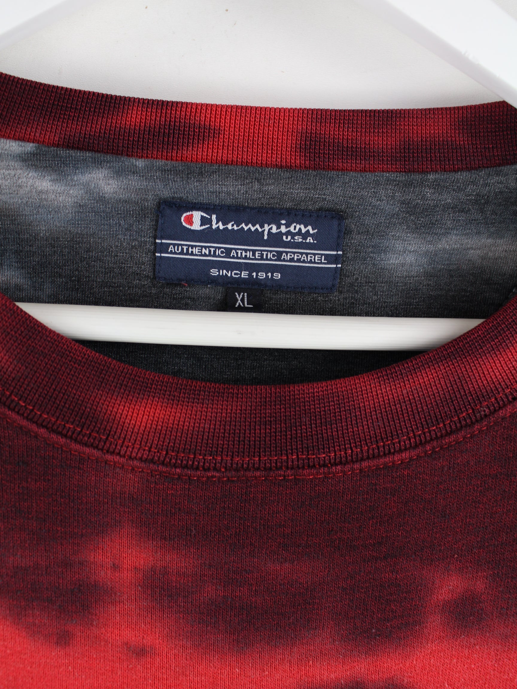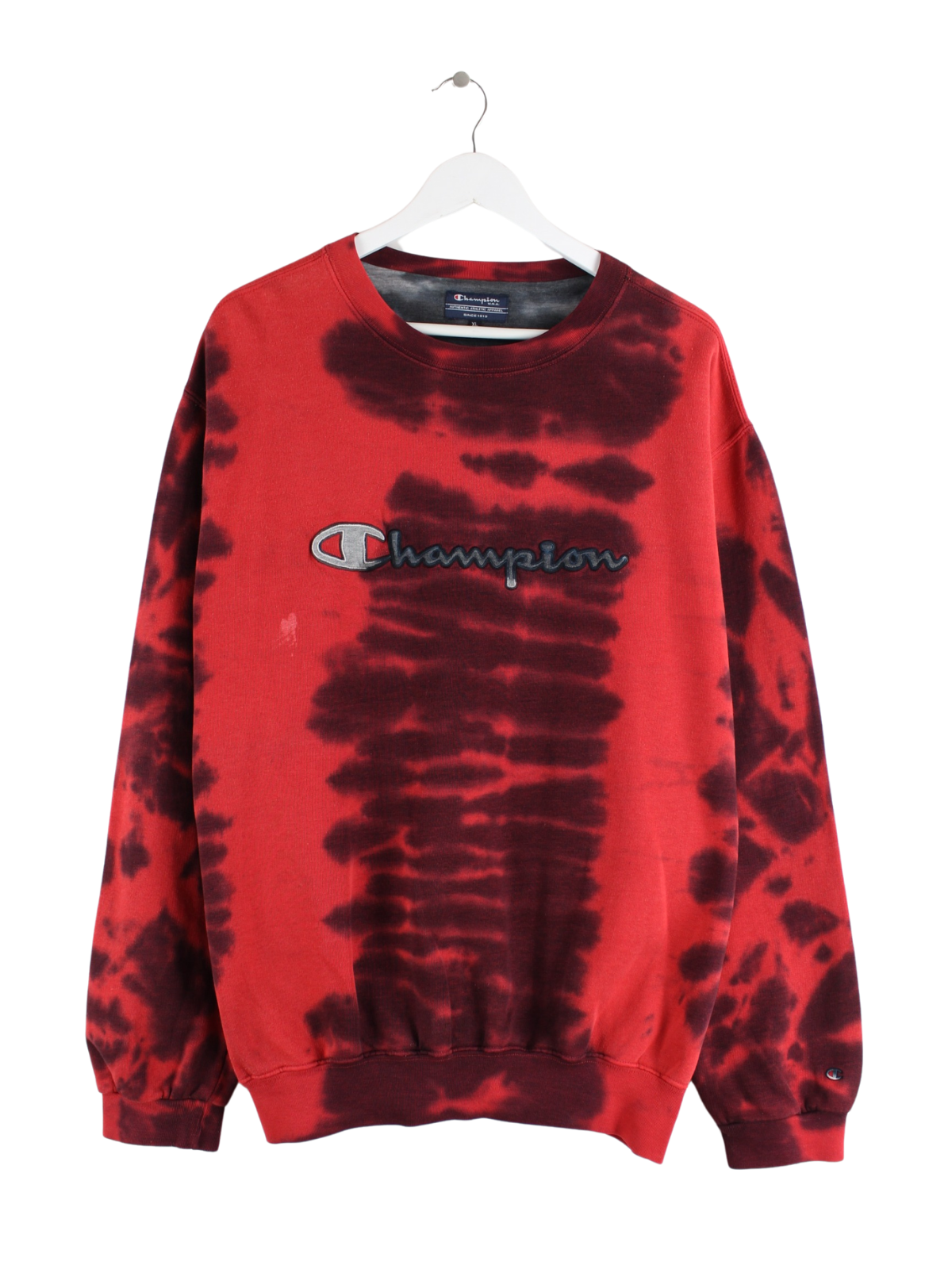 Roter Sweater mit Stick des Labels Champion in Größe XL. Er ist aus einer Baumwollmischung gefertigt und in gutem Zustand auf Lager.
