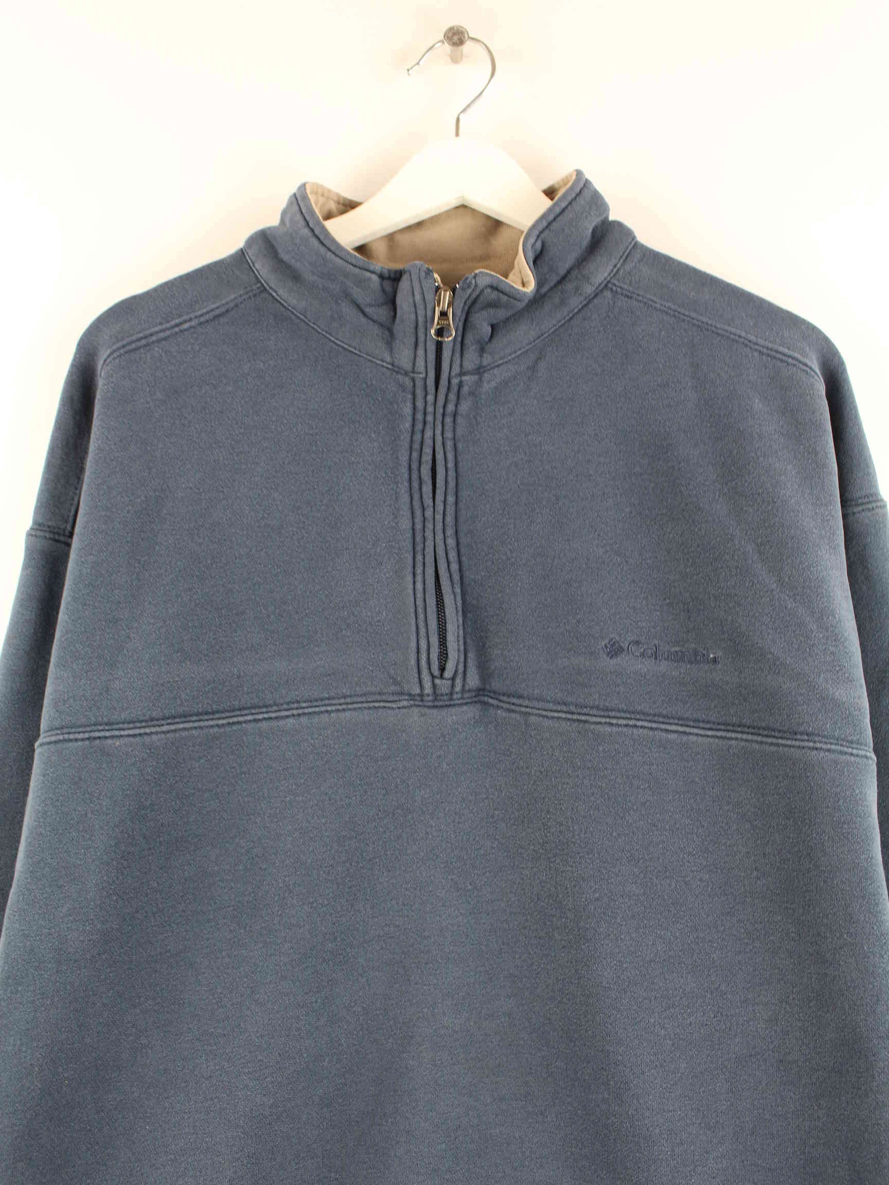 Sweater vom Label Columbia in Größe XL. Er ist aus einer Baumwollmischung angefertigt und in Blau zu haben.