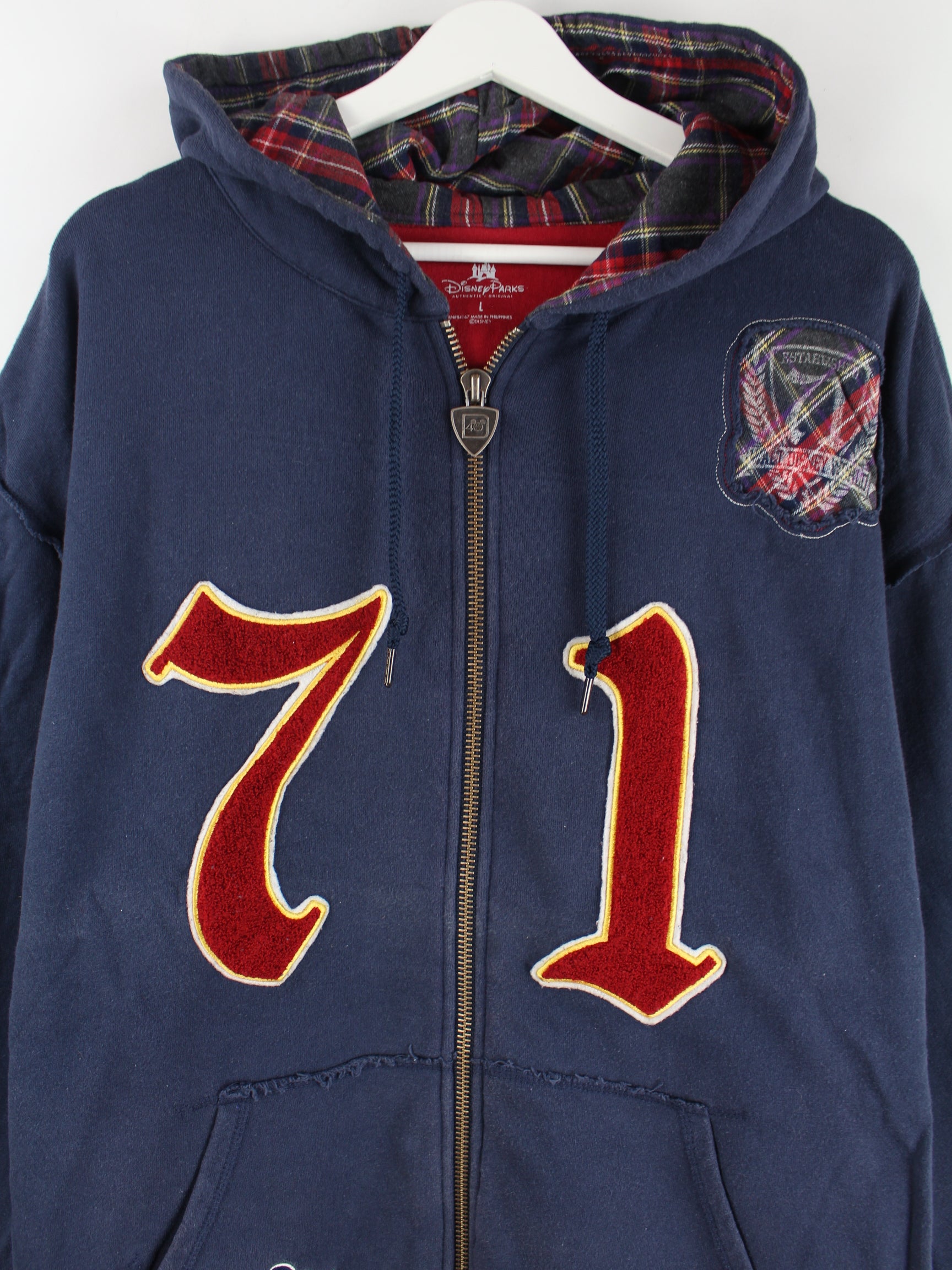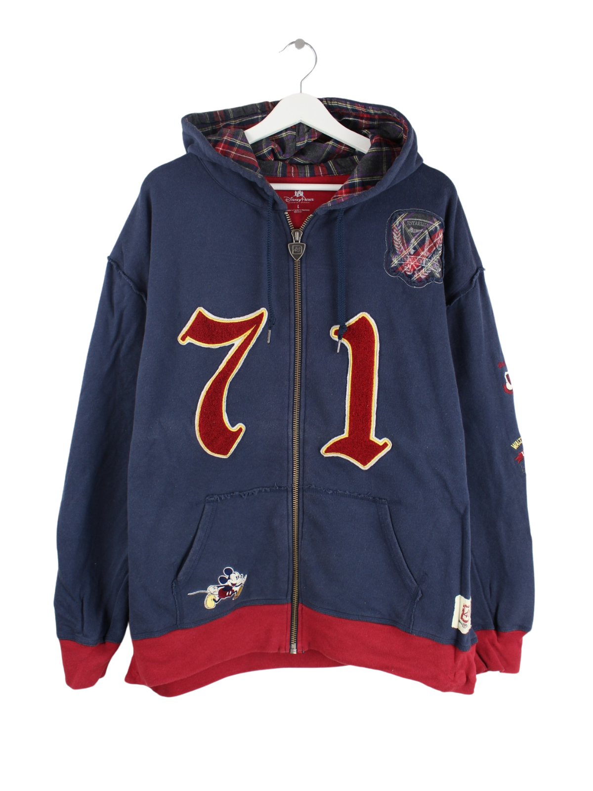 Hoodie vom Label Disney mit Stickereien in Größe L. Er ist aus einer Baumwollmischung angefertigt und in Blau in Stock.