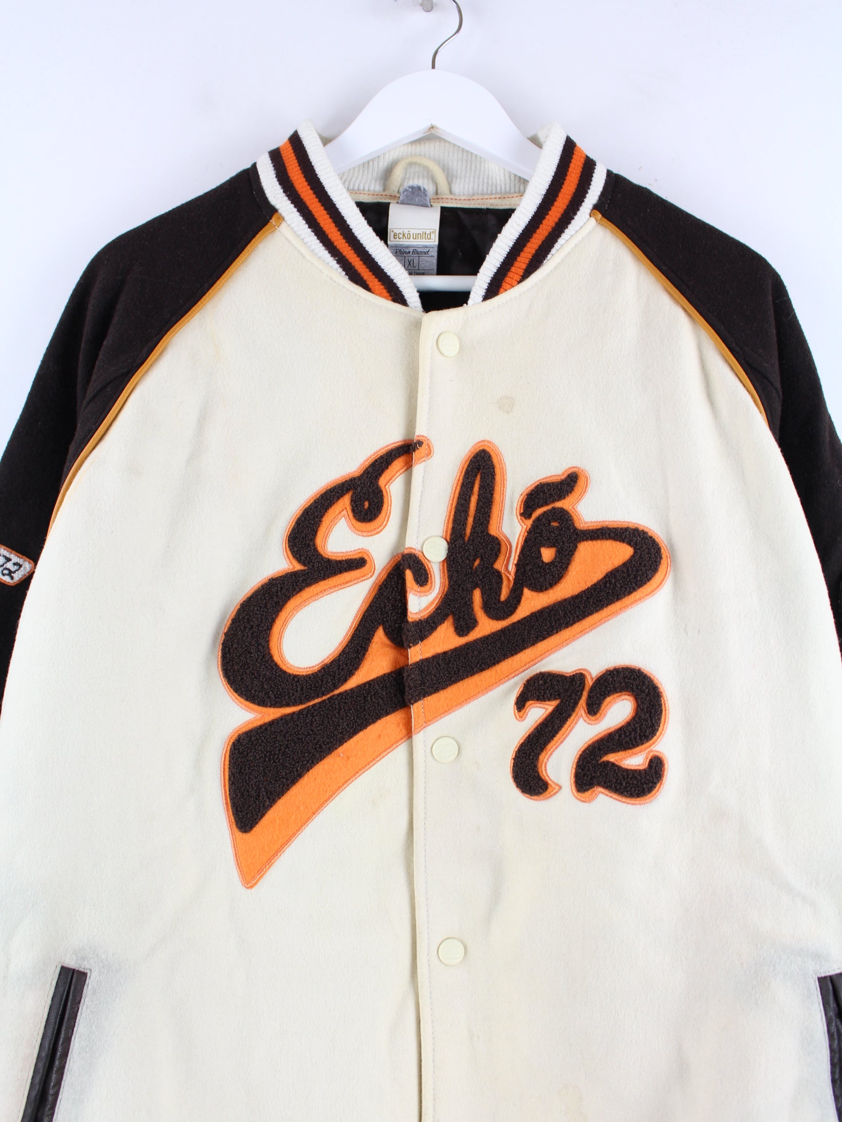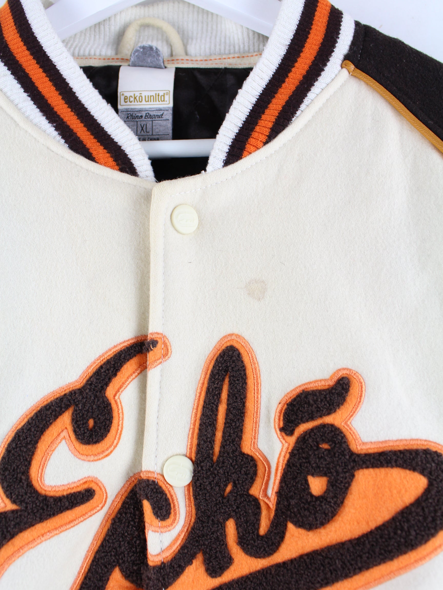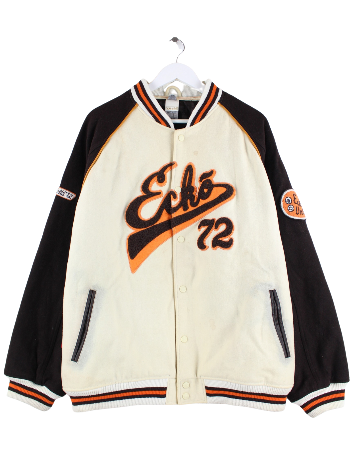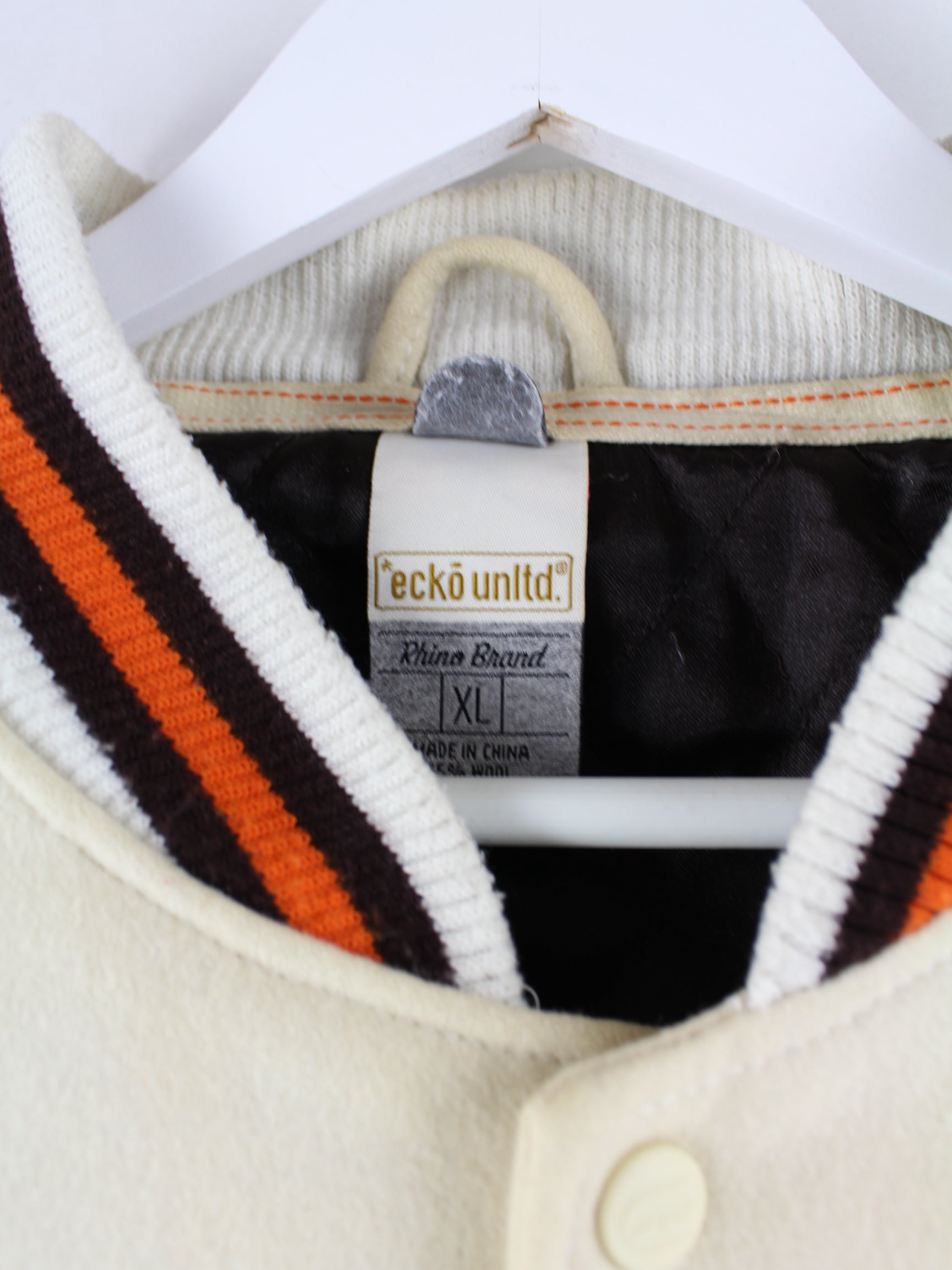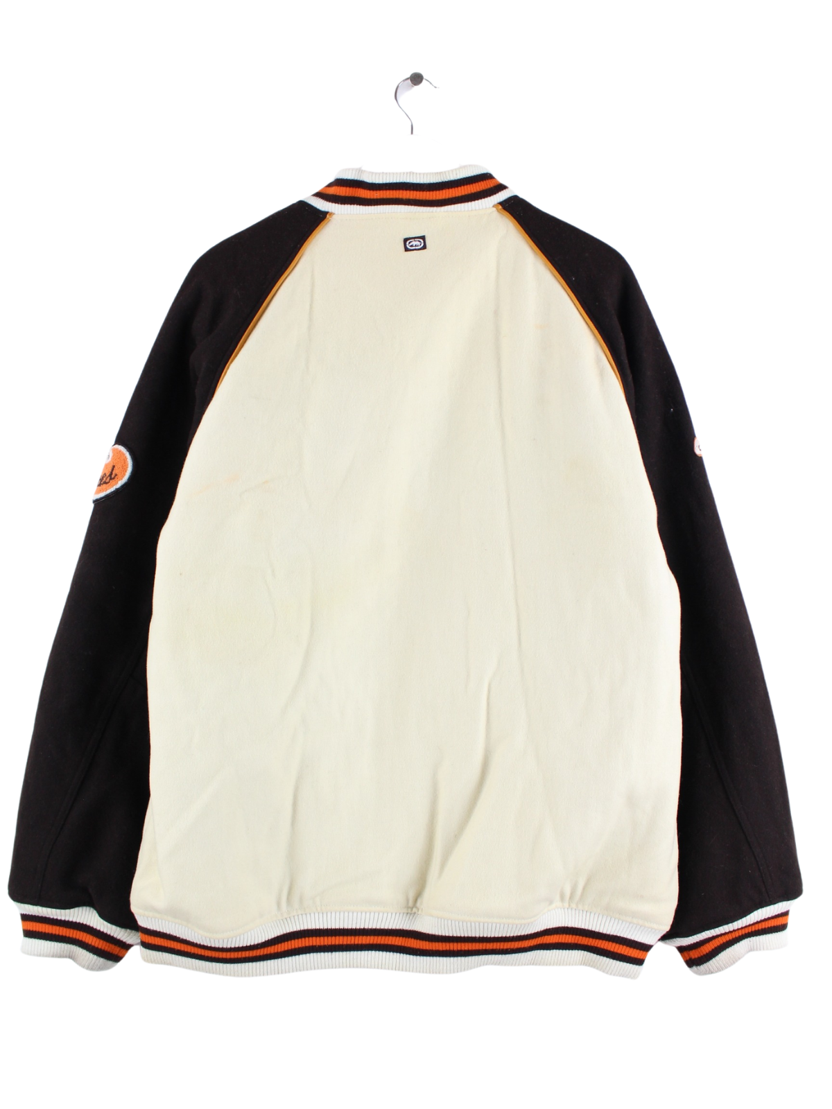 Beigefarbene Jacke mit gesticktem Logo aus dem Hause Ecko in Größe XL. Sie ist aus einer Baumwollmischung hergestellt. Den Zustand würden wir als 'In Ordnung' bezeichnen (vergl. Bilder).