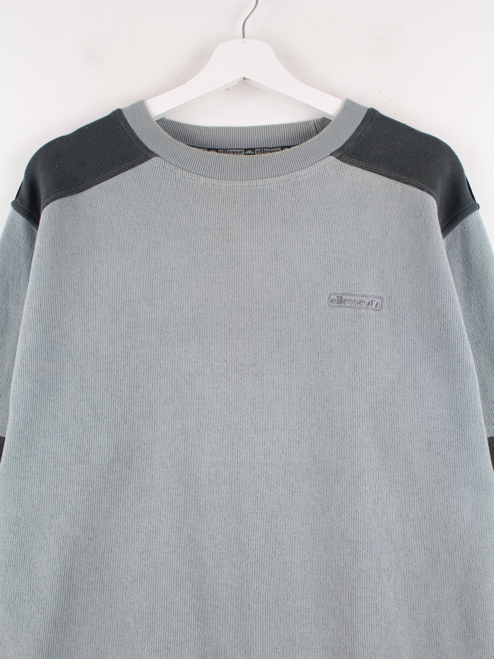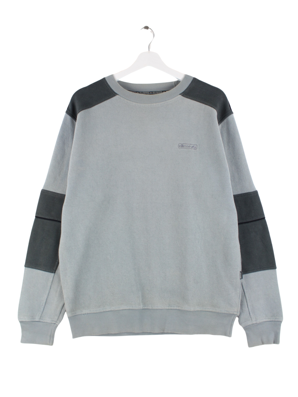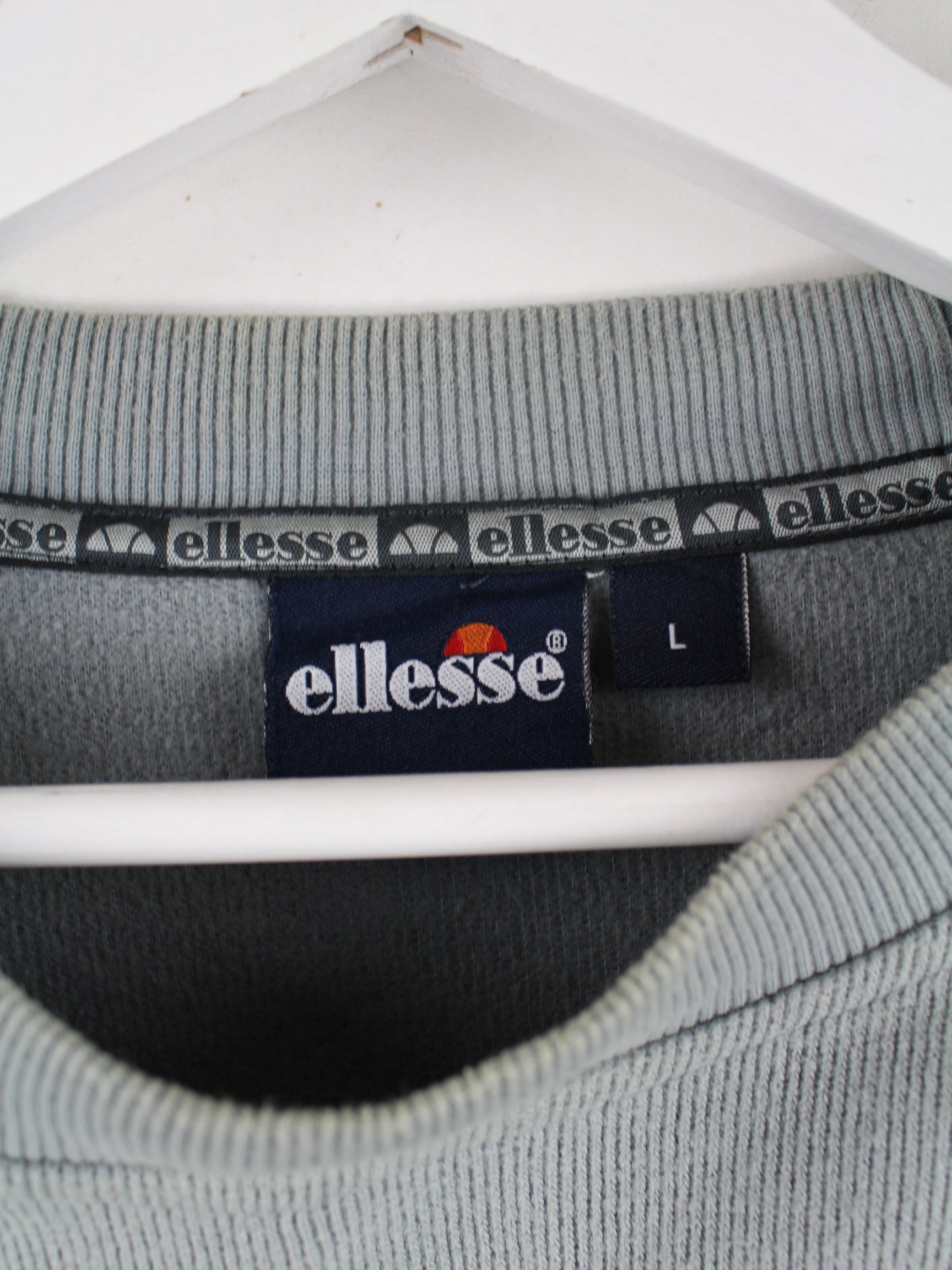 Sweater aus dem Hause Ellesse in Größe L aus den 90'ern. Er ist aus einer Baumwollmischung gefertigt und in Grau zu bekommen.