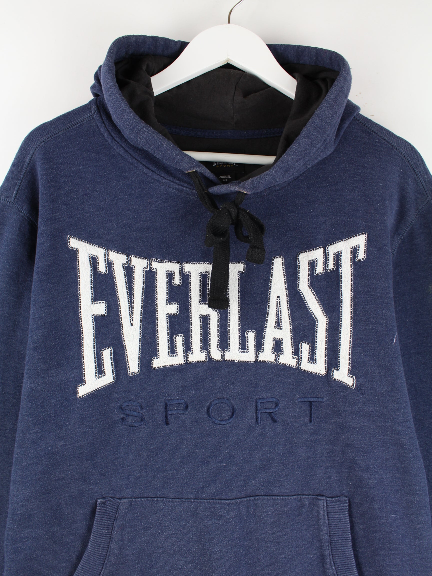 Blauer Hoodie mit Stickereien vom Label Everlast in Größe L. Er ist aus einer Baumwollmischung gemacht und in gutem Zustand auf Lager.