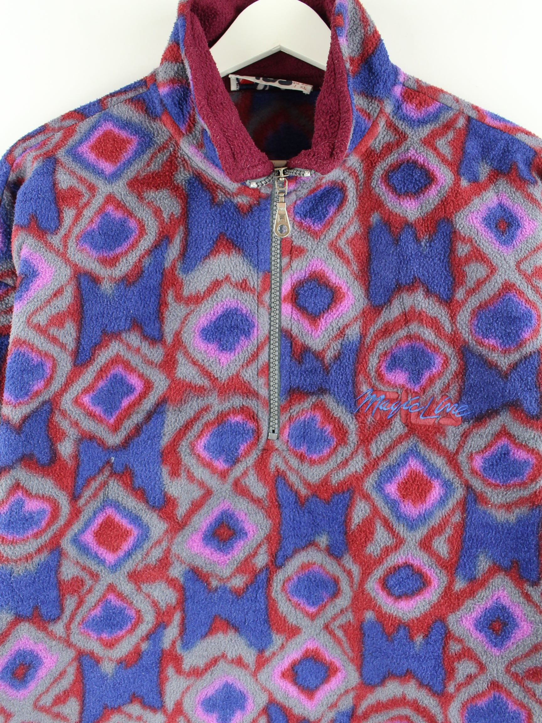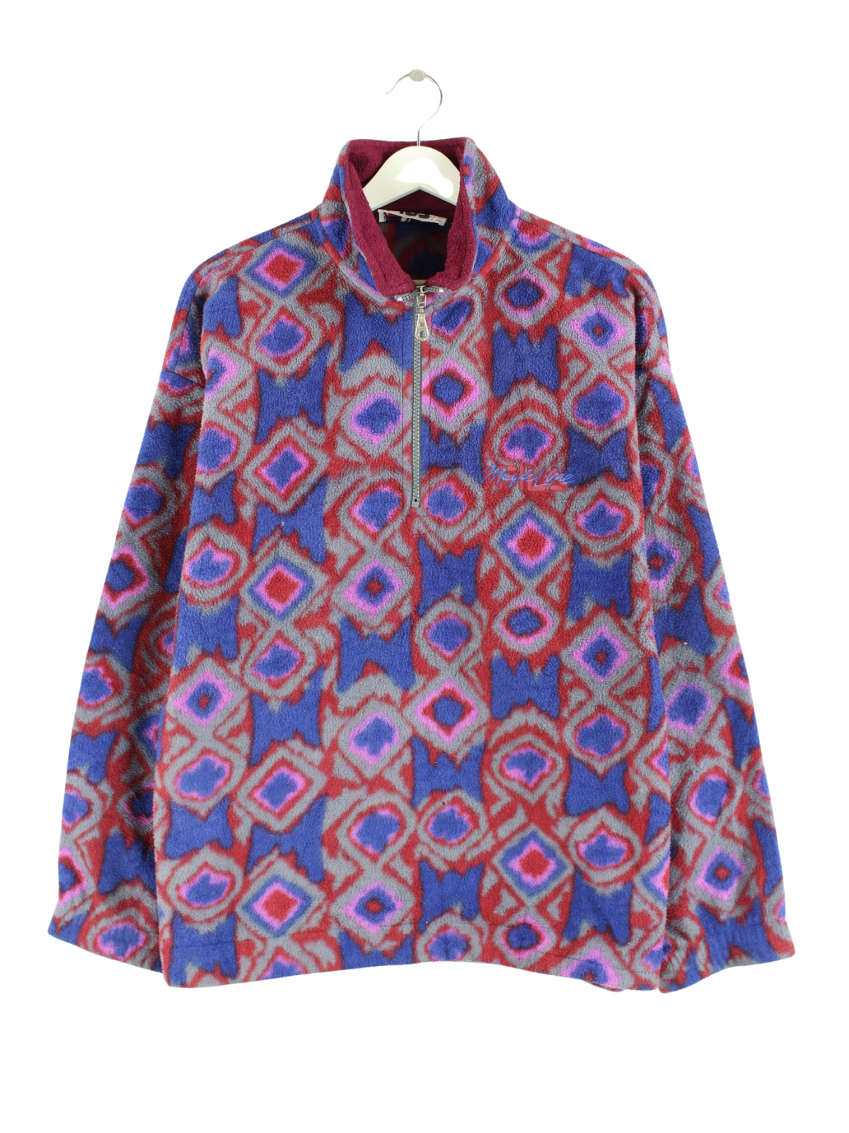 Vintage 90s Fila Magic Line Fleece mit buntem crazy Pattern Muster.