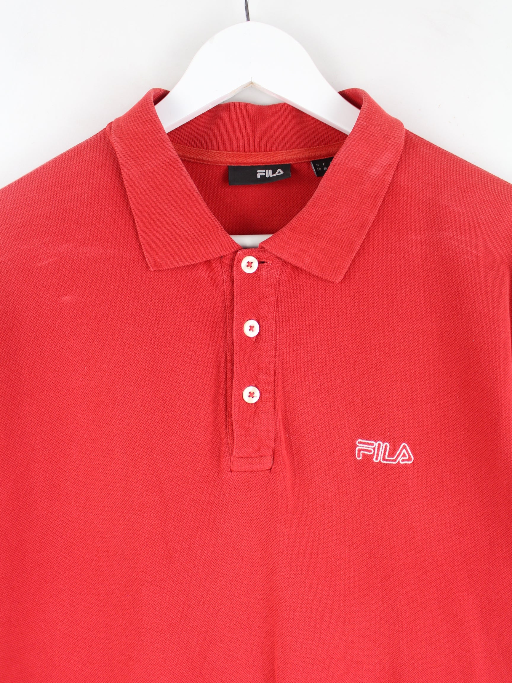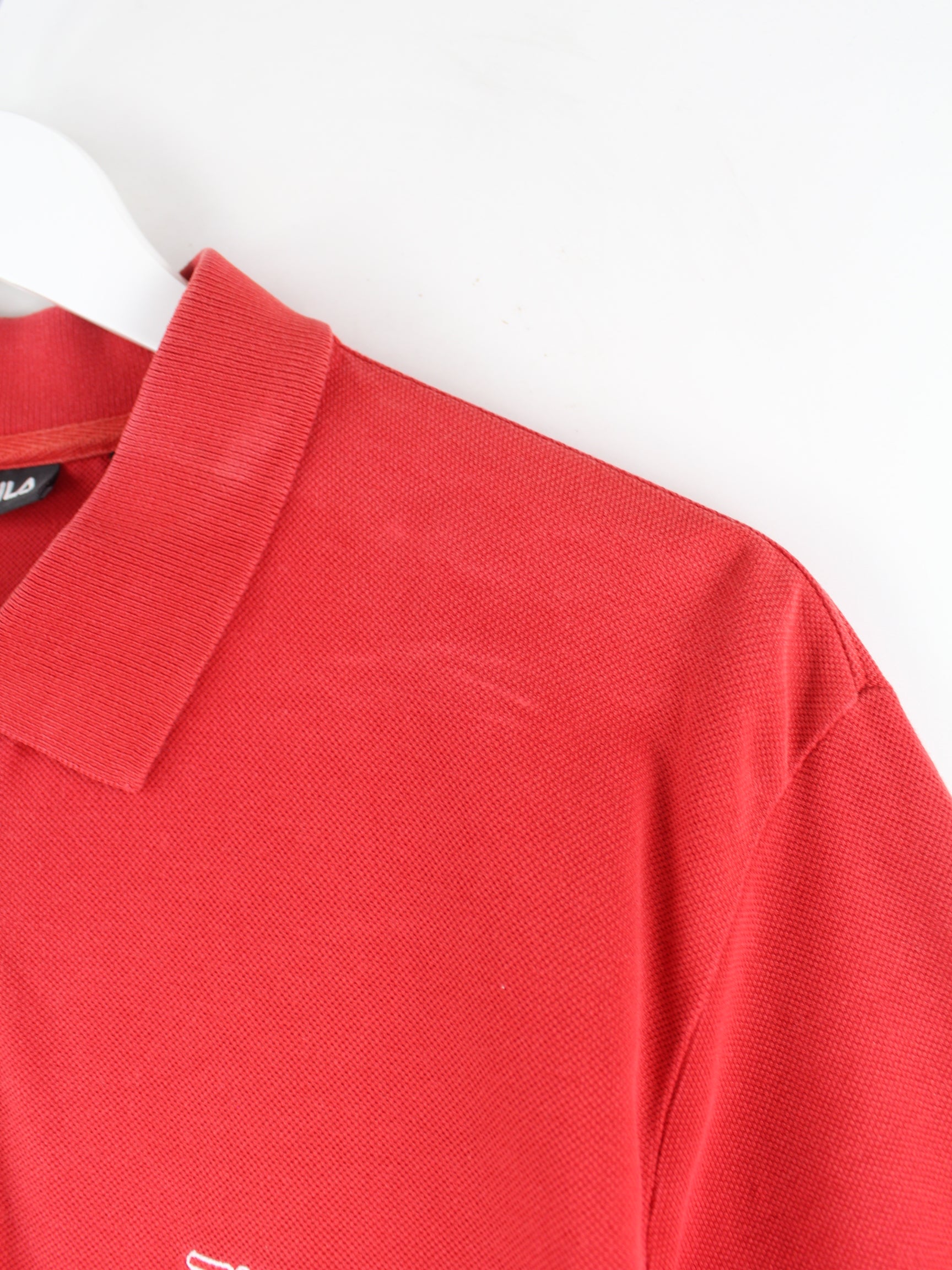 Rotes Poloshirt des Labels Fila in Größe M. Es ist aus Baumwolle hergestellt. Den Zustand würden wir als 'In Ordnung' bezeichnen (vergl. Bilder).