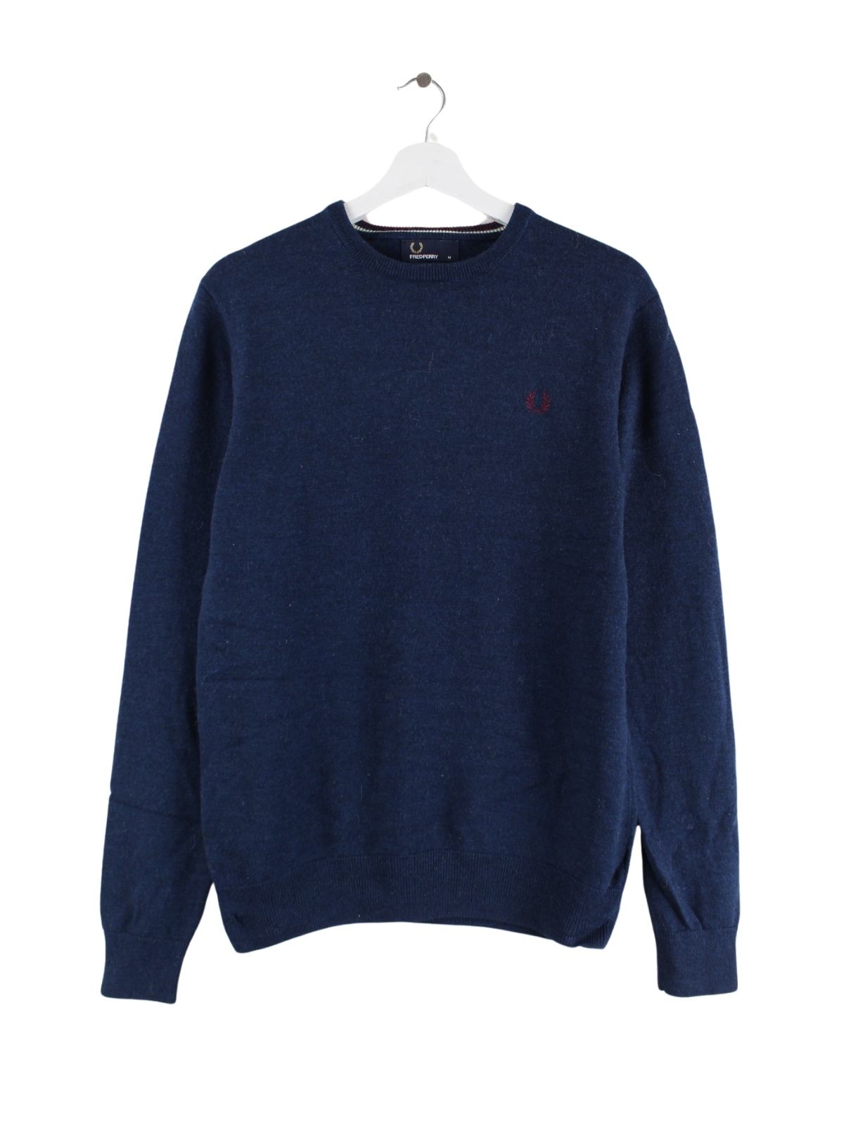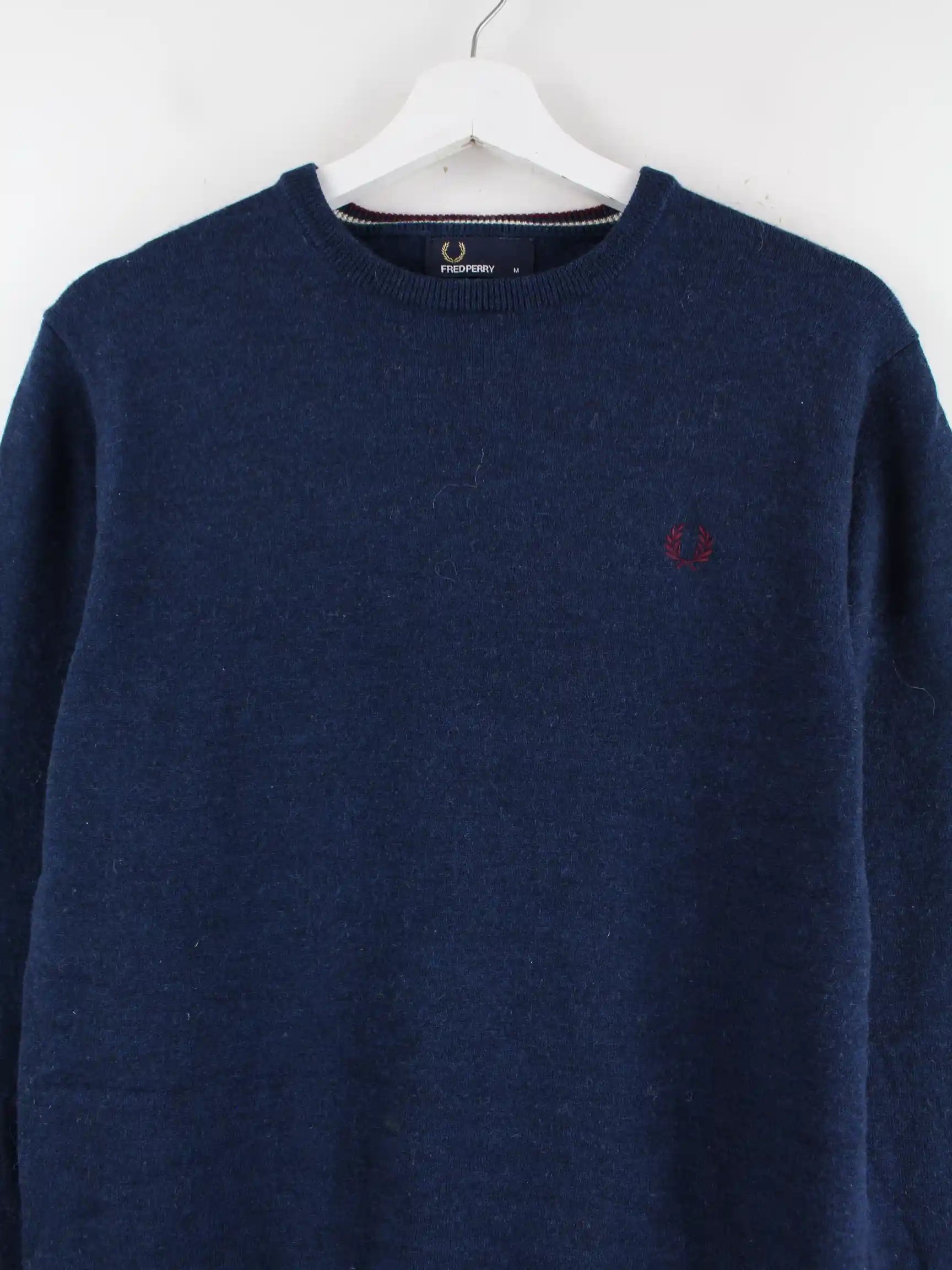 Pullover der Brand Fred Perry in Größe M. Er ist aus Wolle produziert und in Blau im Bestand.