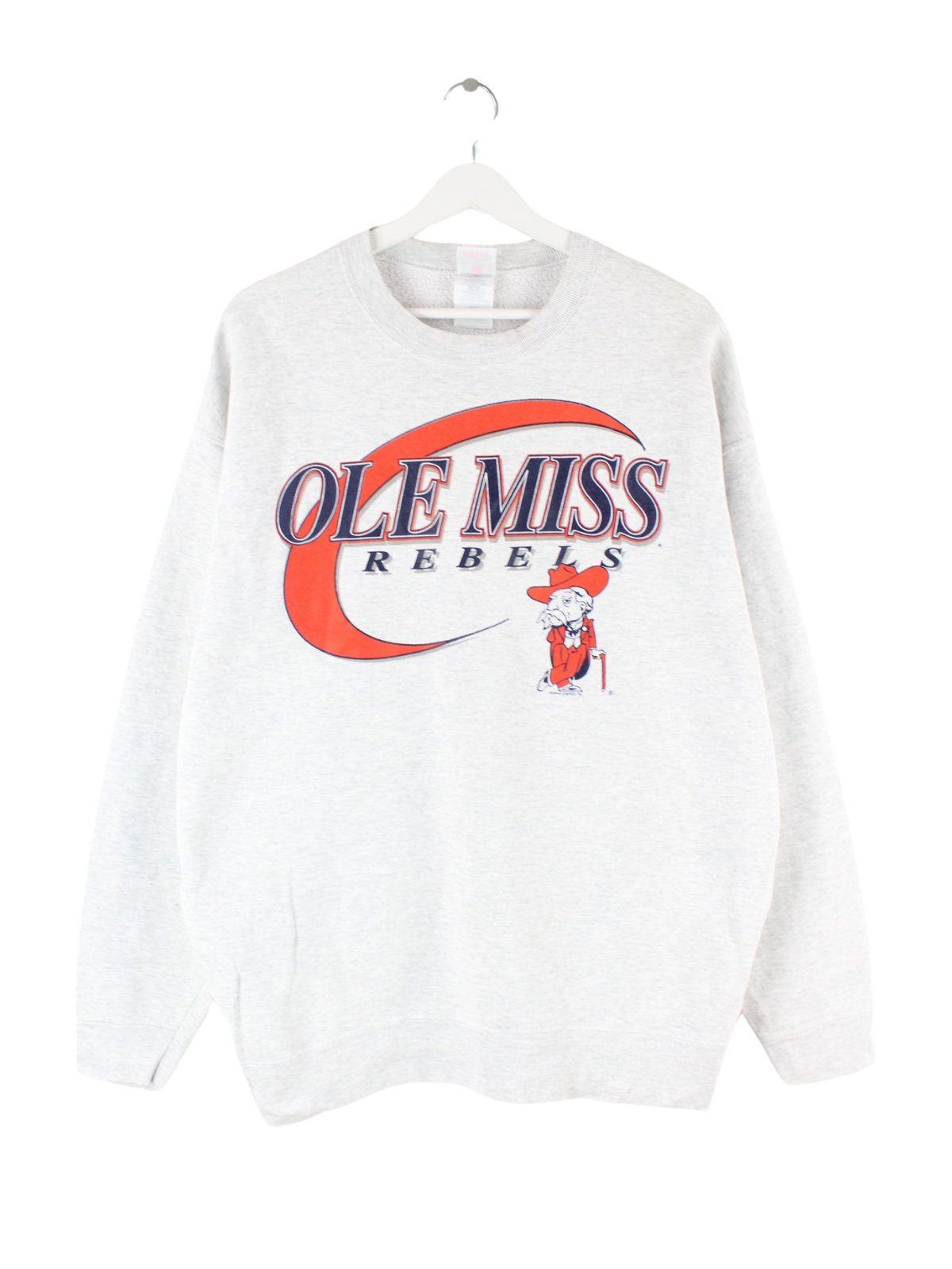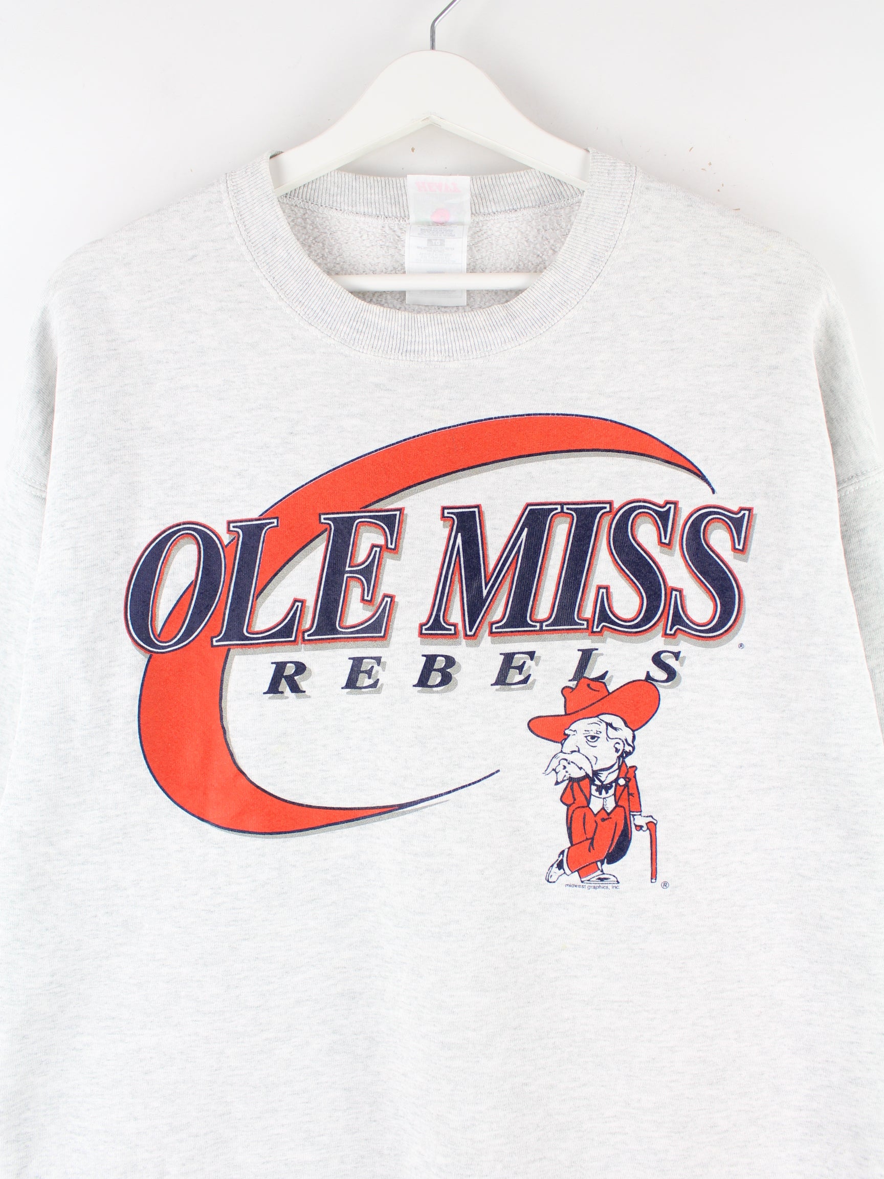 Fruit of the Loom 90s Vintage Ole Miss Rebels Print Heavy Sweater Grau XL