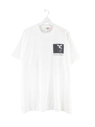 T-Shirt der Brand Fruit of the Loom in Größe XXL aus den 90'ern. Es ist aus Baumwolle gefertigt und in Weiß in Stock. Mit seltenem Free Print.