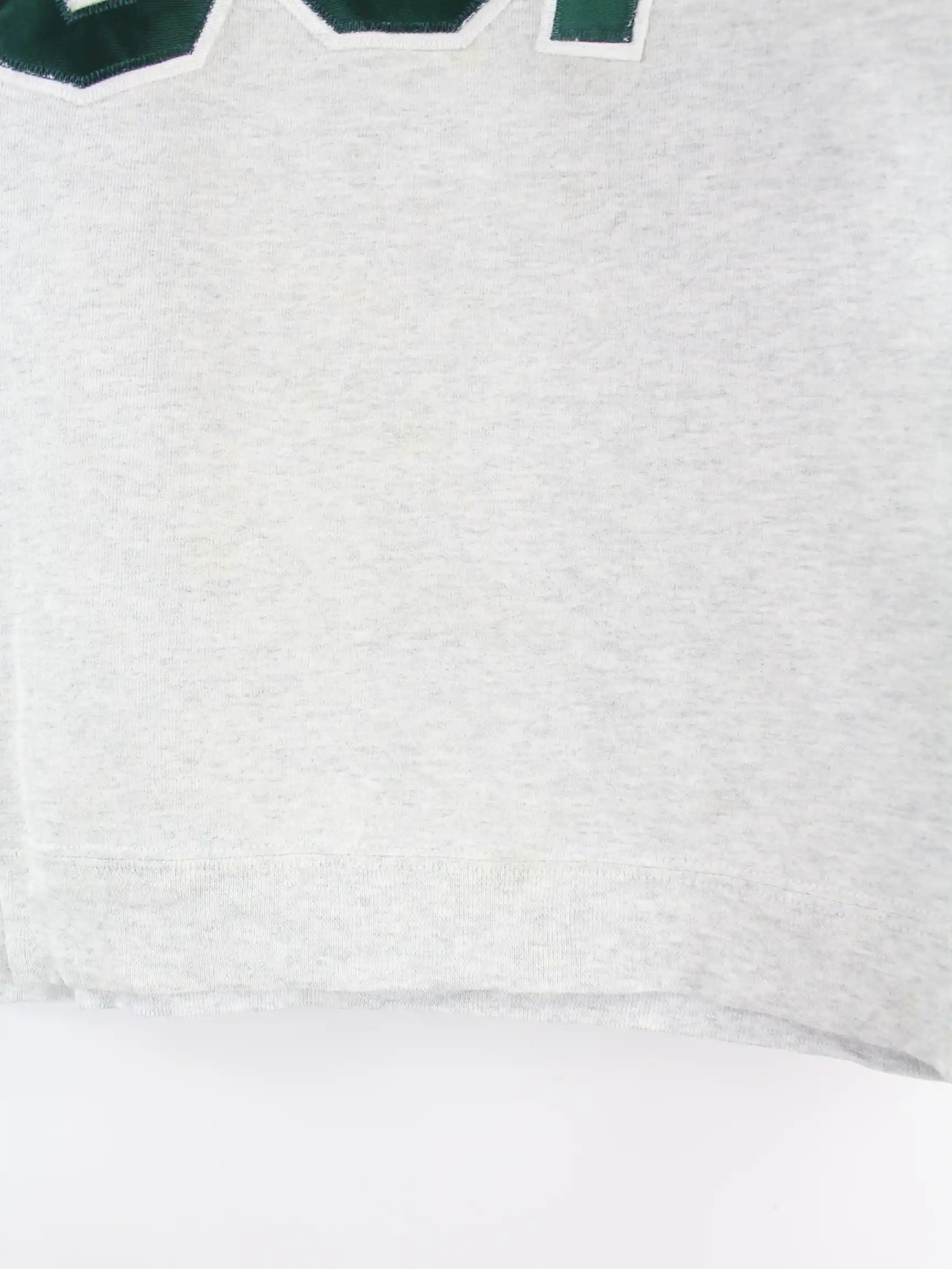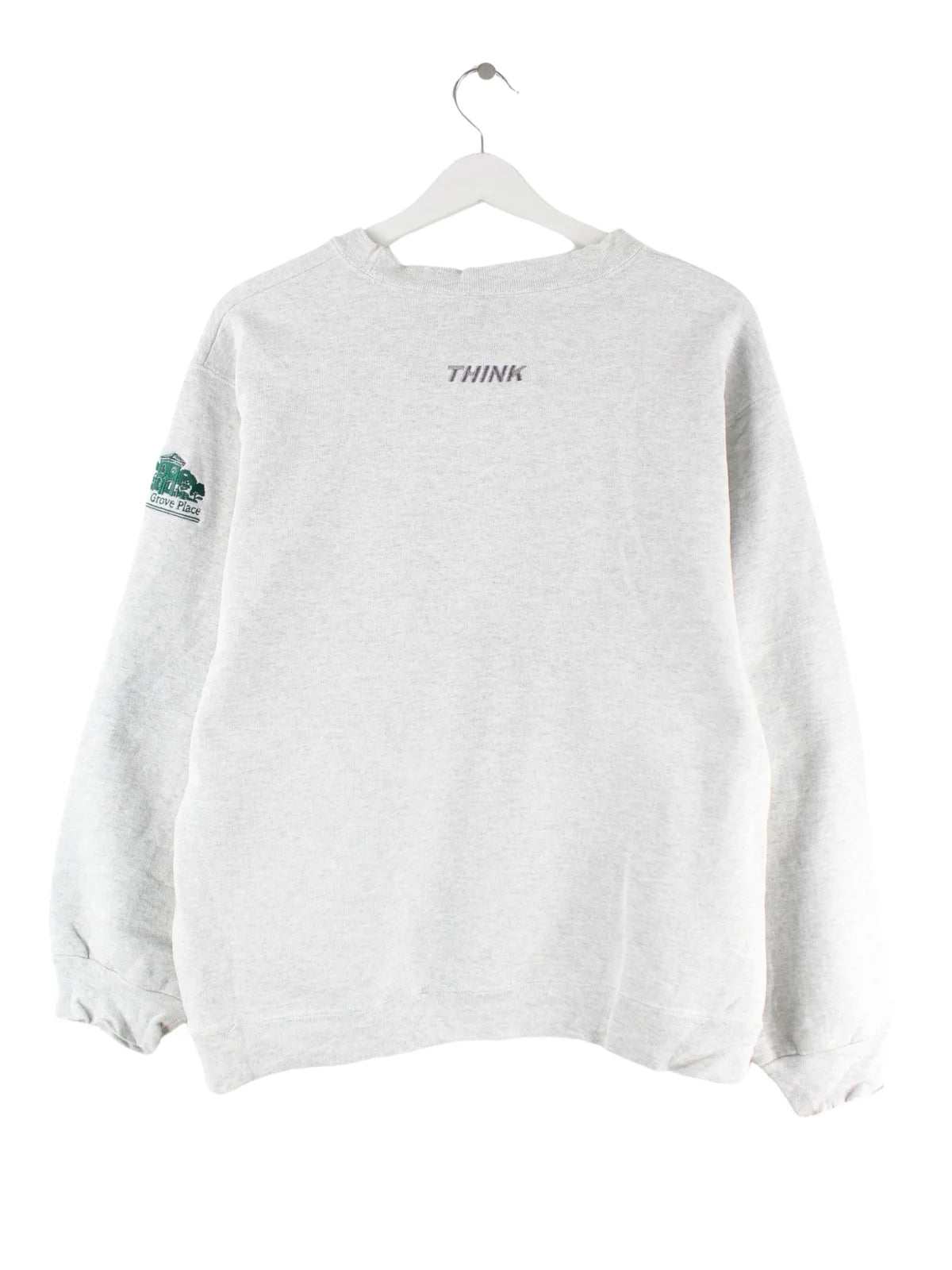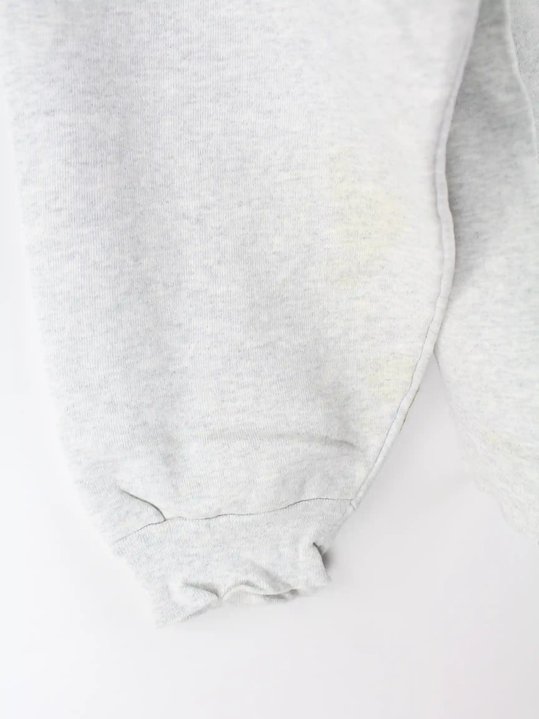 Grauer Sweater mit Stickereien aus dem Hause Fruit of the Loom aus den 90'ern in Größe M. Er ist aus einer Baumwollmischung hergestellt. Den Zustand würden wir als 'In Ordnung' bezeichnen (vergl. Bilder).