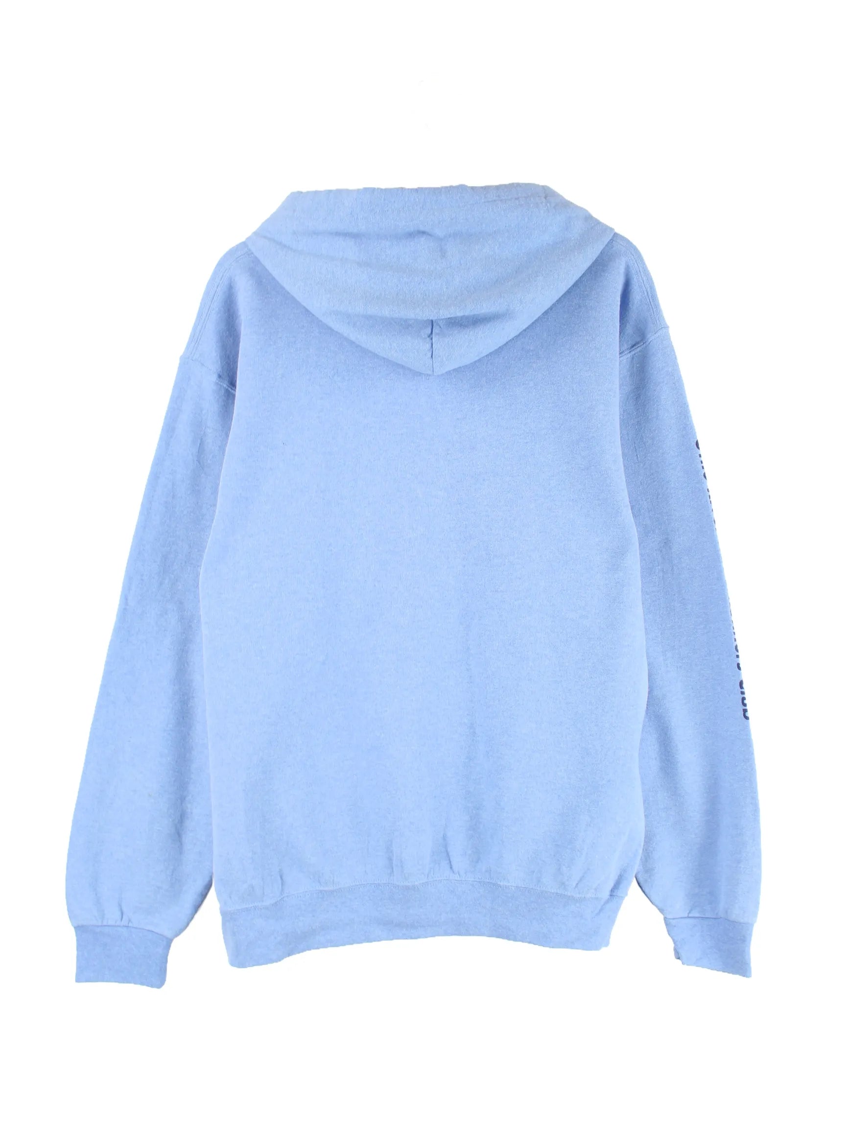 Hoodie vom Brand Fruit of the Loom in Größe L. Er ist aus einer Baumwollmischung produziert und in Blau zu bekommen. Mit schönem Trot Print.