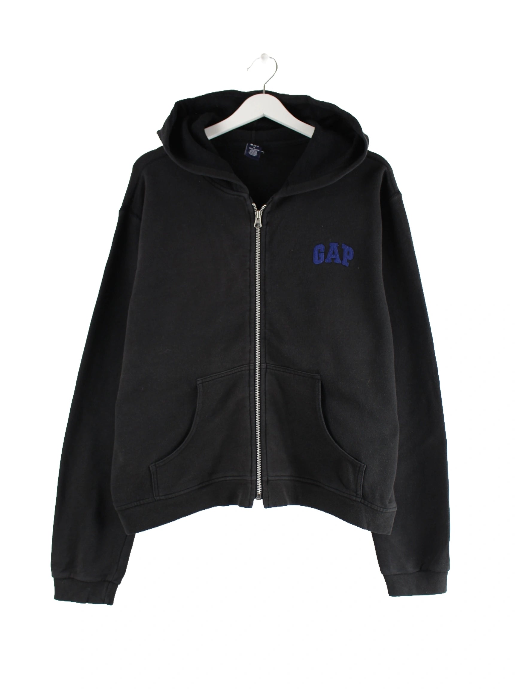 Schwarzer Hoodie mit langem Reißverschluß der Brand GAP in Größe L. Er ist aus einer Baumwollmischung angefertigt und in sehr gutem Zustand zu bekommen.
