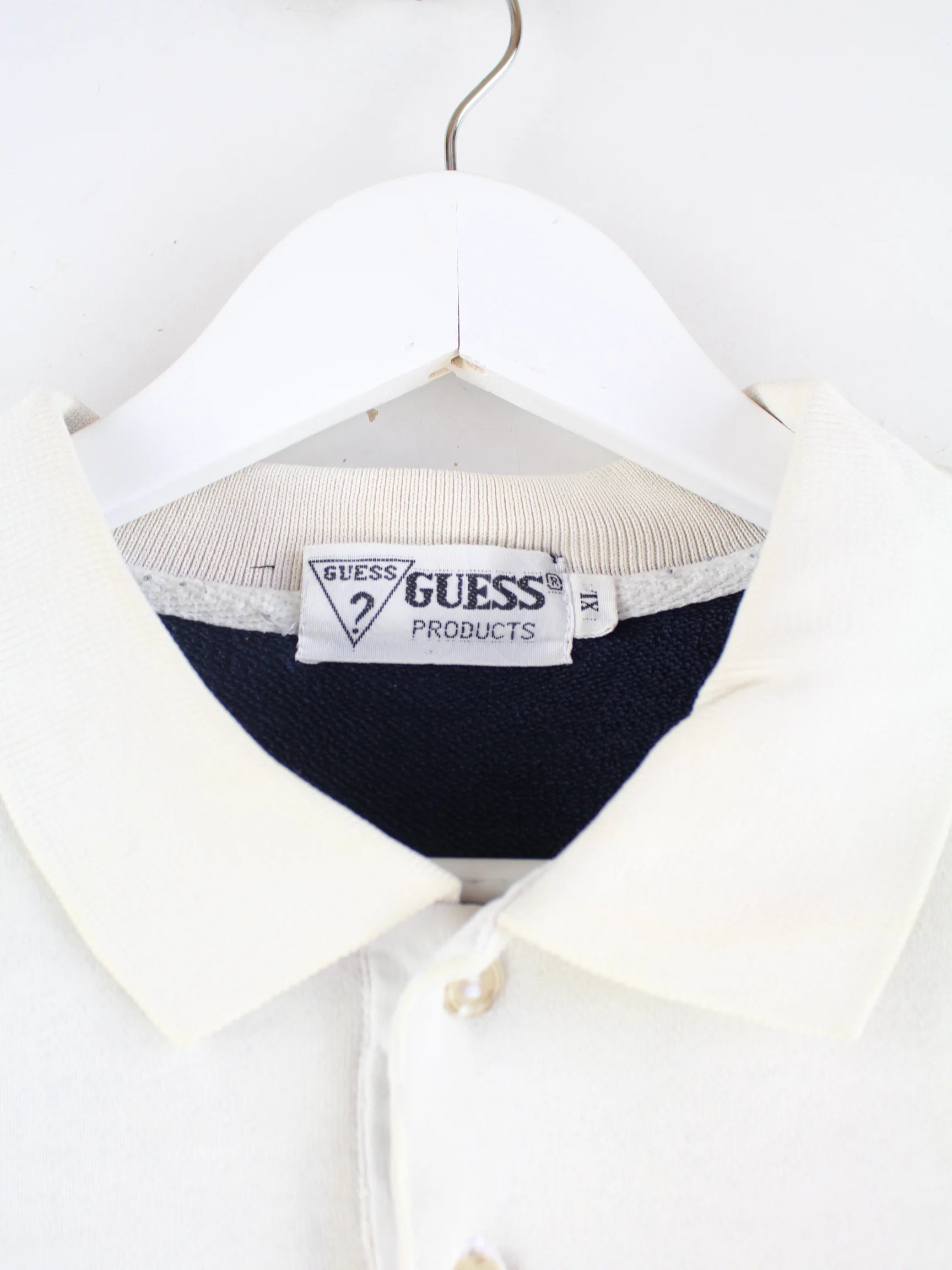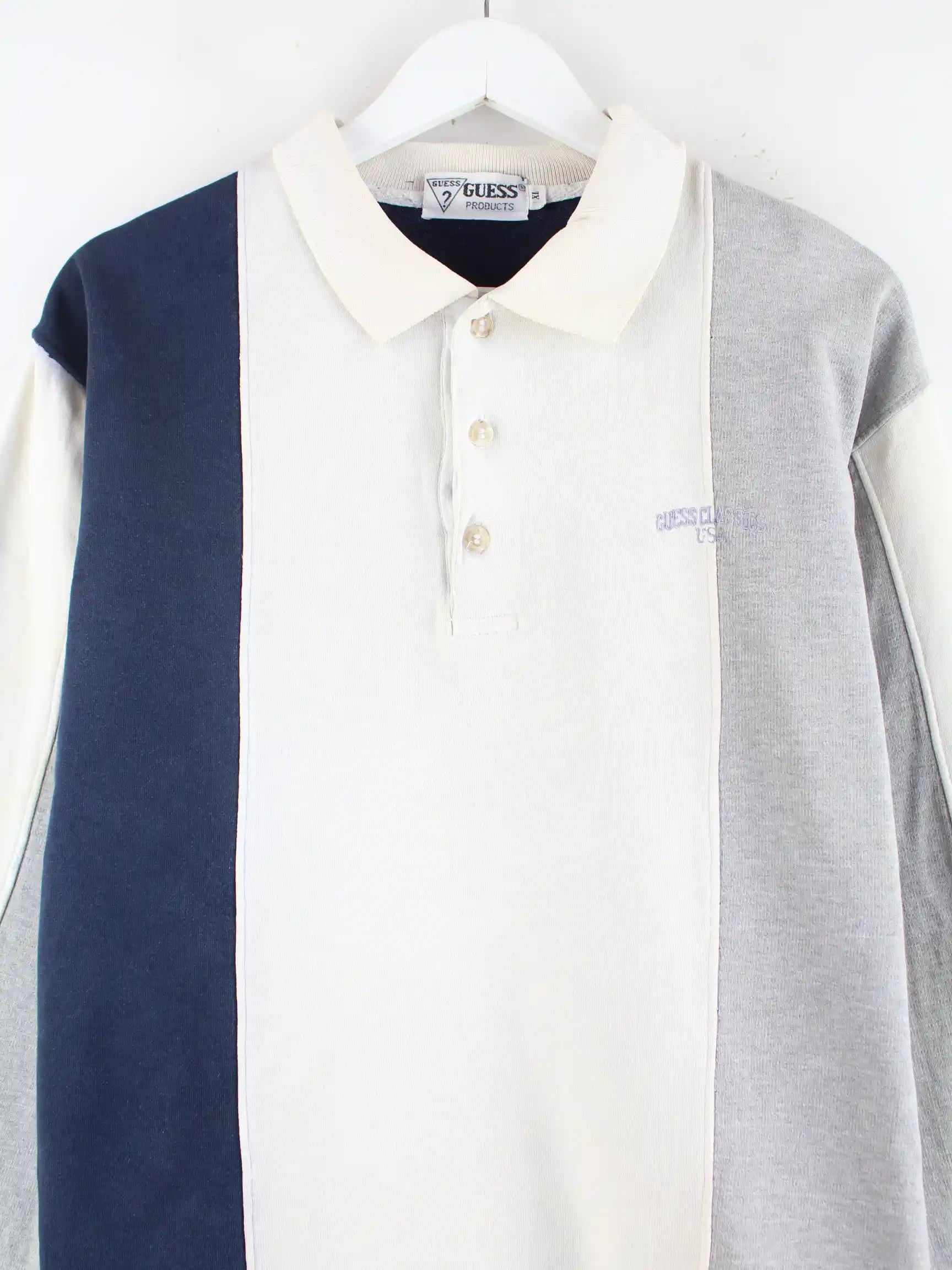 Grauer Sweater vom Brand Guess aus den 80'ern in Größe M. Er ist aus einer Baumwollmischung hergestellt. Den Zustand würden wir als 'In Ordnung' bezeichnen (vergl. Bilder).