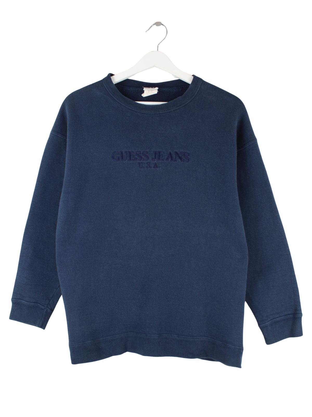 Blauer Sweater des Labels Guess aus den 90'ern in Größe M. Er ist aus einer Baumwollmischung und in sehr gutem Zustand zu haben.