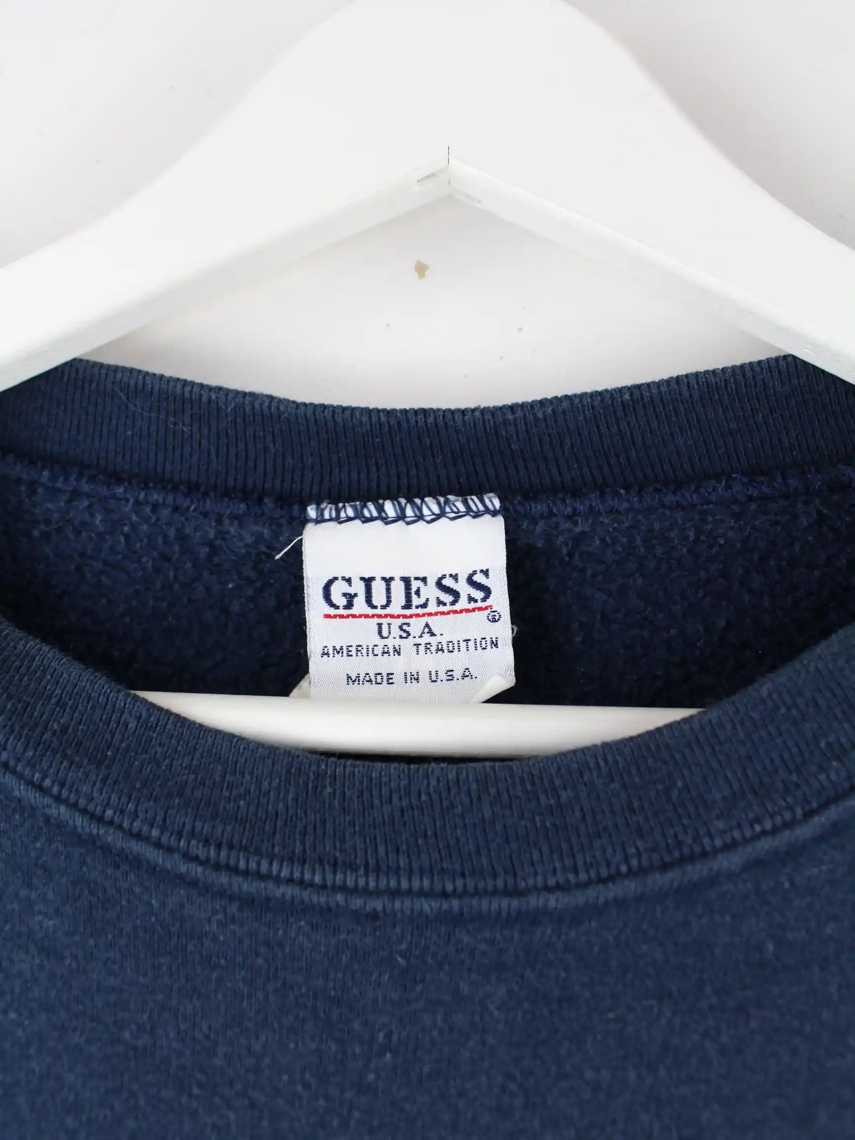 Guess Damen 90s Vintage Big Logo Sweater Blau M