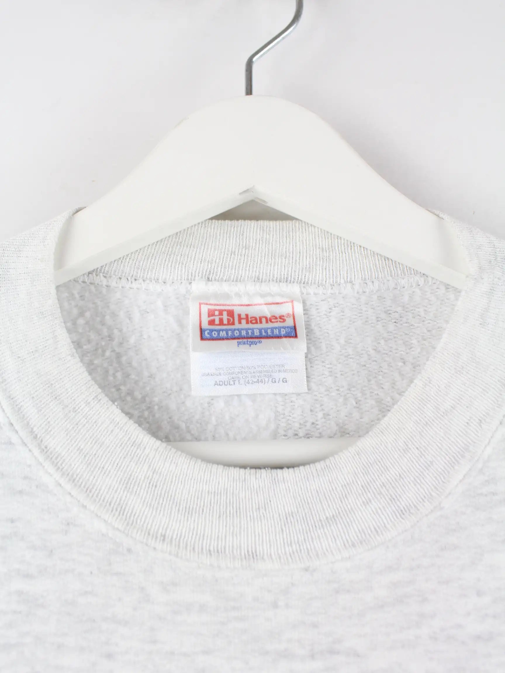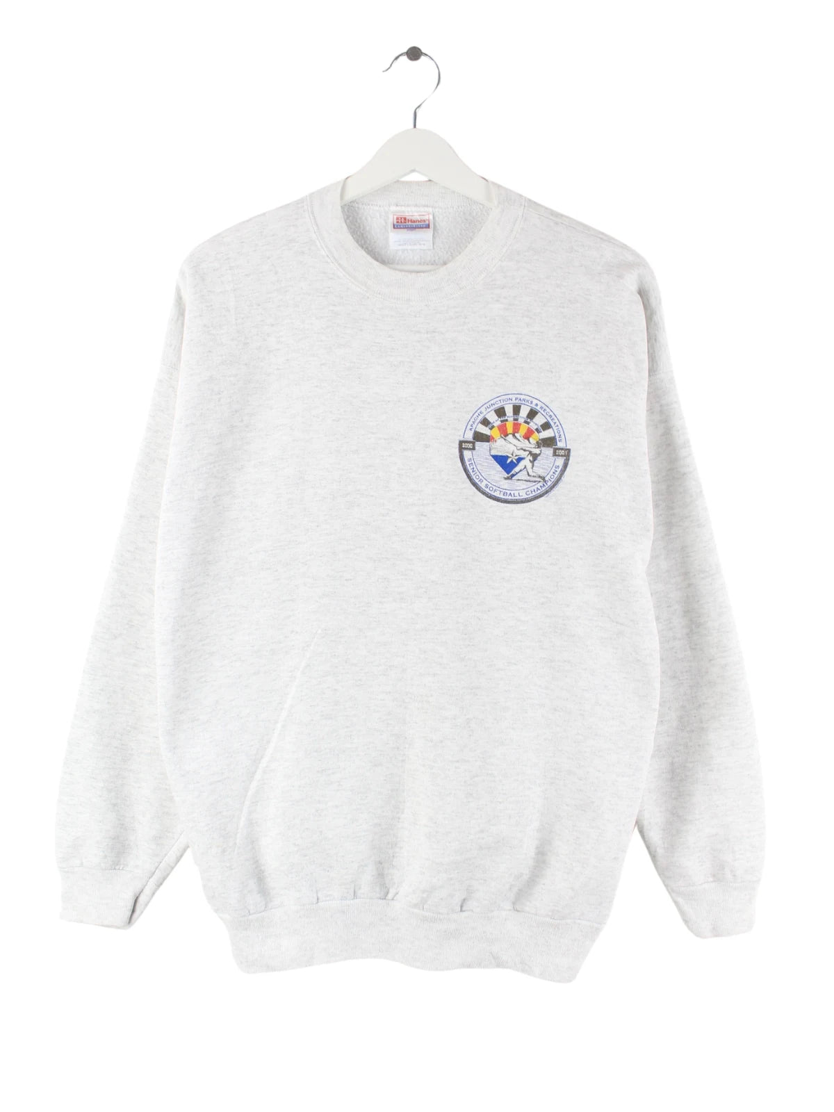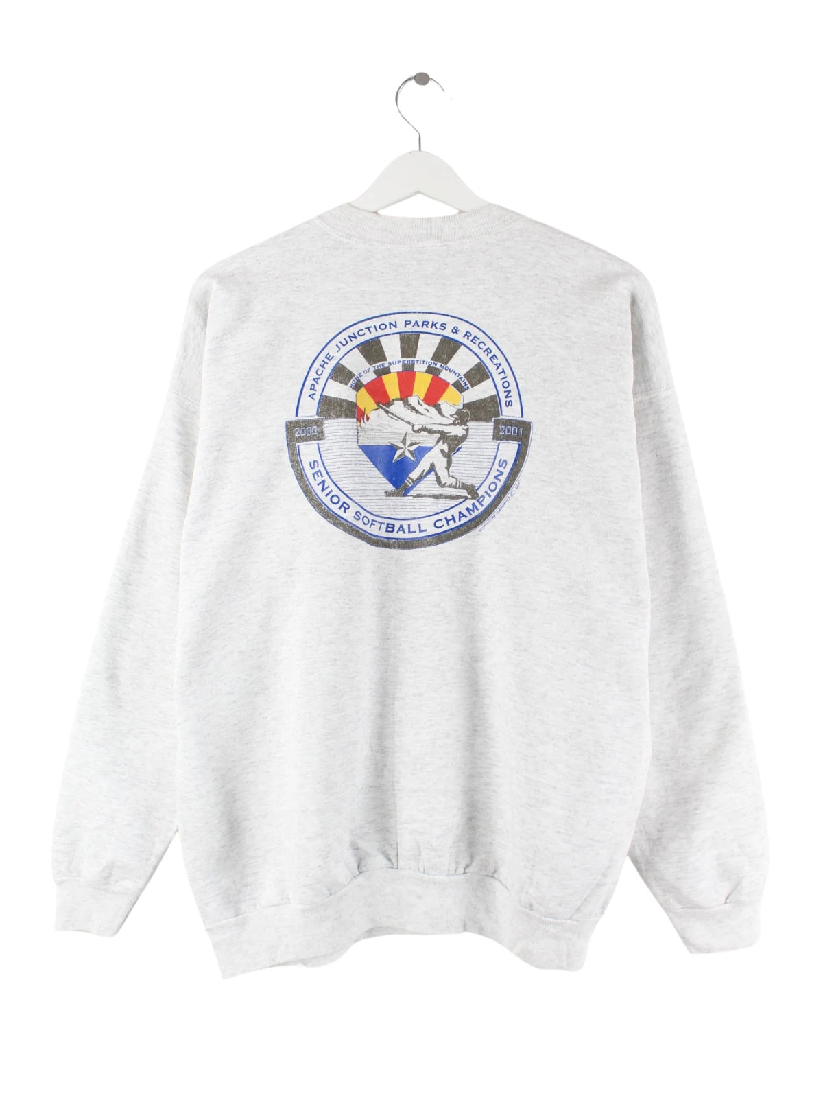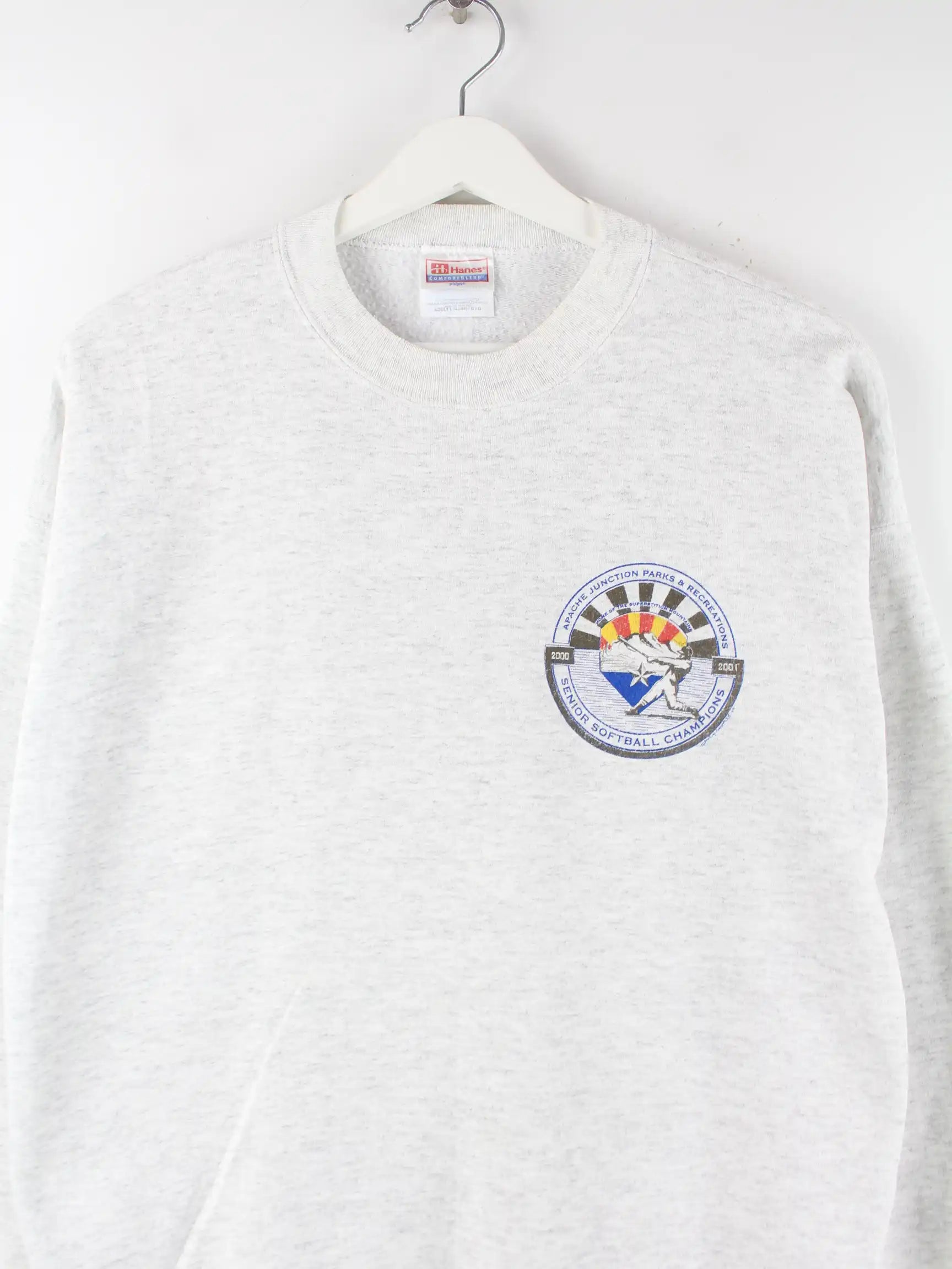 Sweater vom Label Hanes in Größe L. Er ist aus einer Baumwollmischung gemacht und in Grau zu haben. Mit seltenem Softball Print.