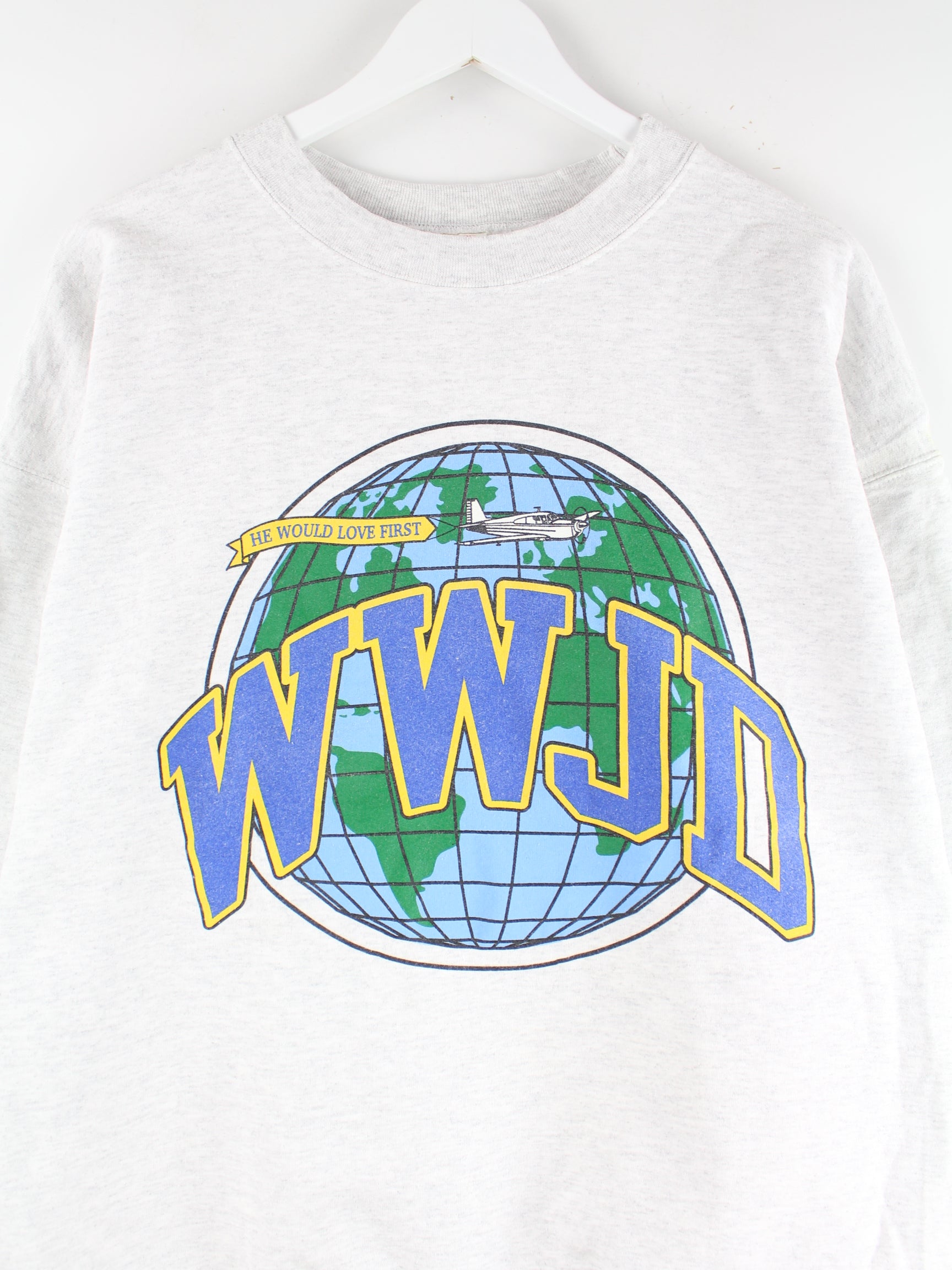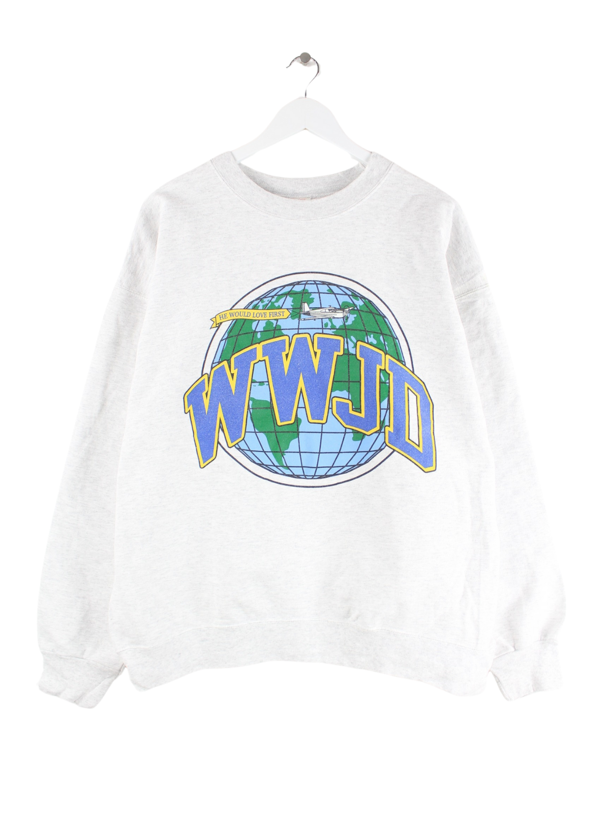 Hanes 90s Vintage WWJD Global University Heavy Sweater Grau L