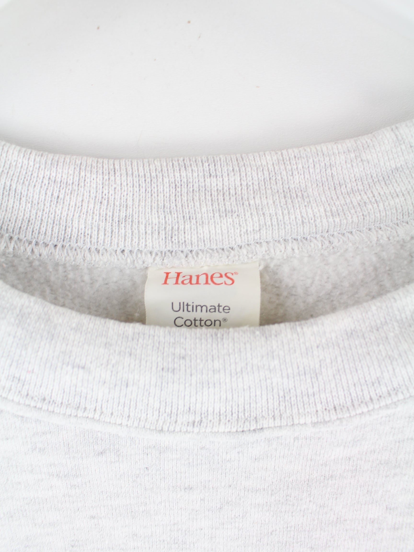 Grauer Sweater des Labels Hanes aus den 90'ern in Größe L. Er ist aus einer Baumwollmischung gemacht und in sehr gutem Zustand auf Lager.