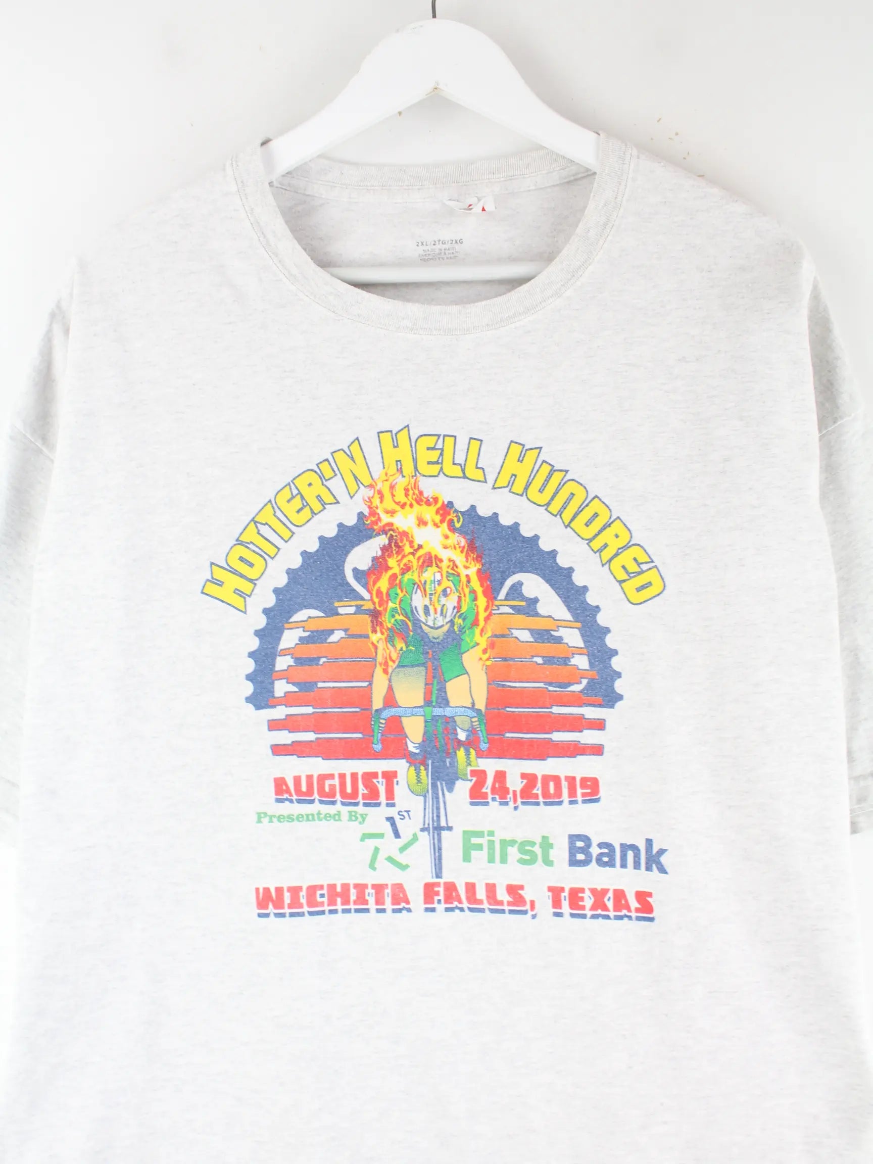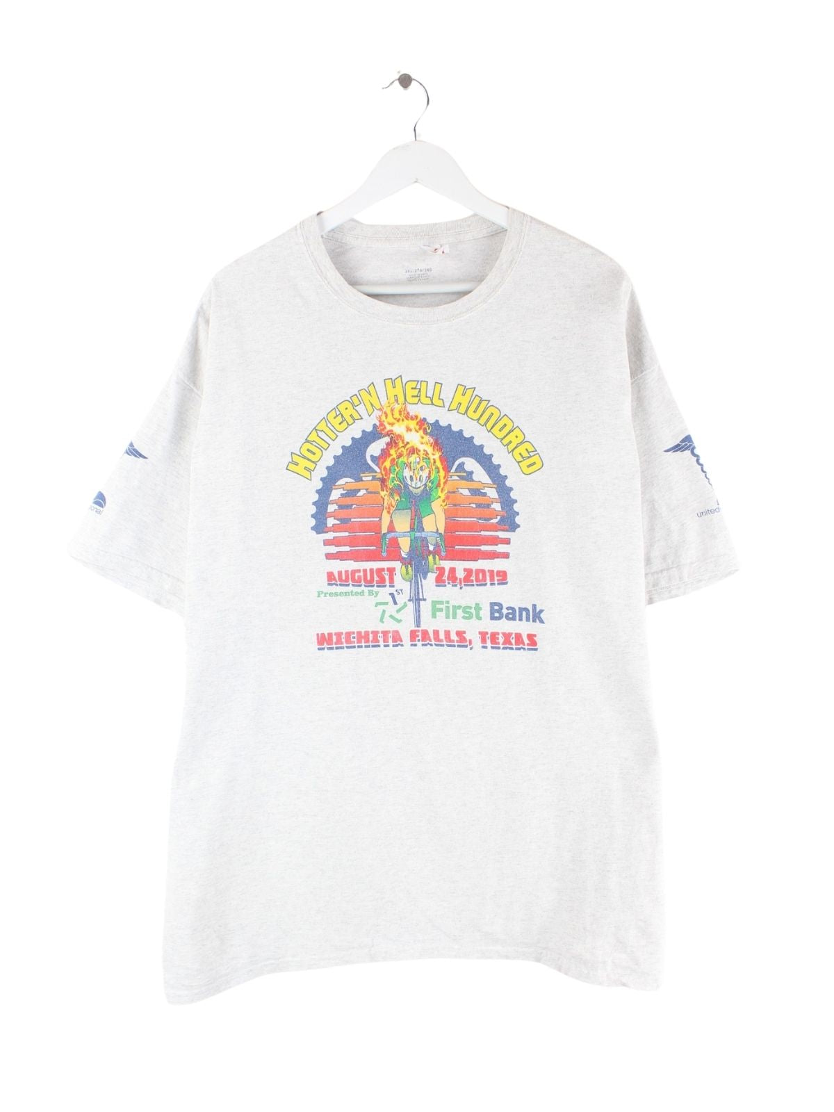 T-Shirt aus dem Hause Hanes in Größe XXL. Es ist aus Baumwolle gefertigt und in Grau im Bestand. Mit schickem Biker Print.