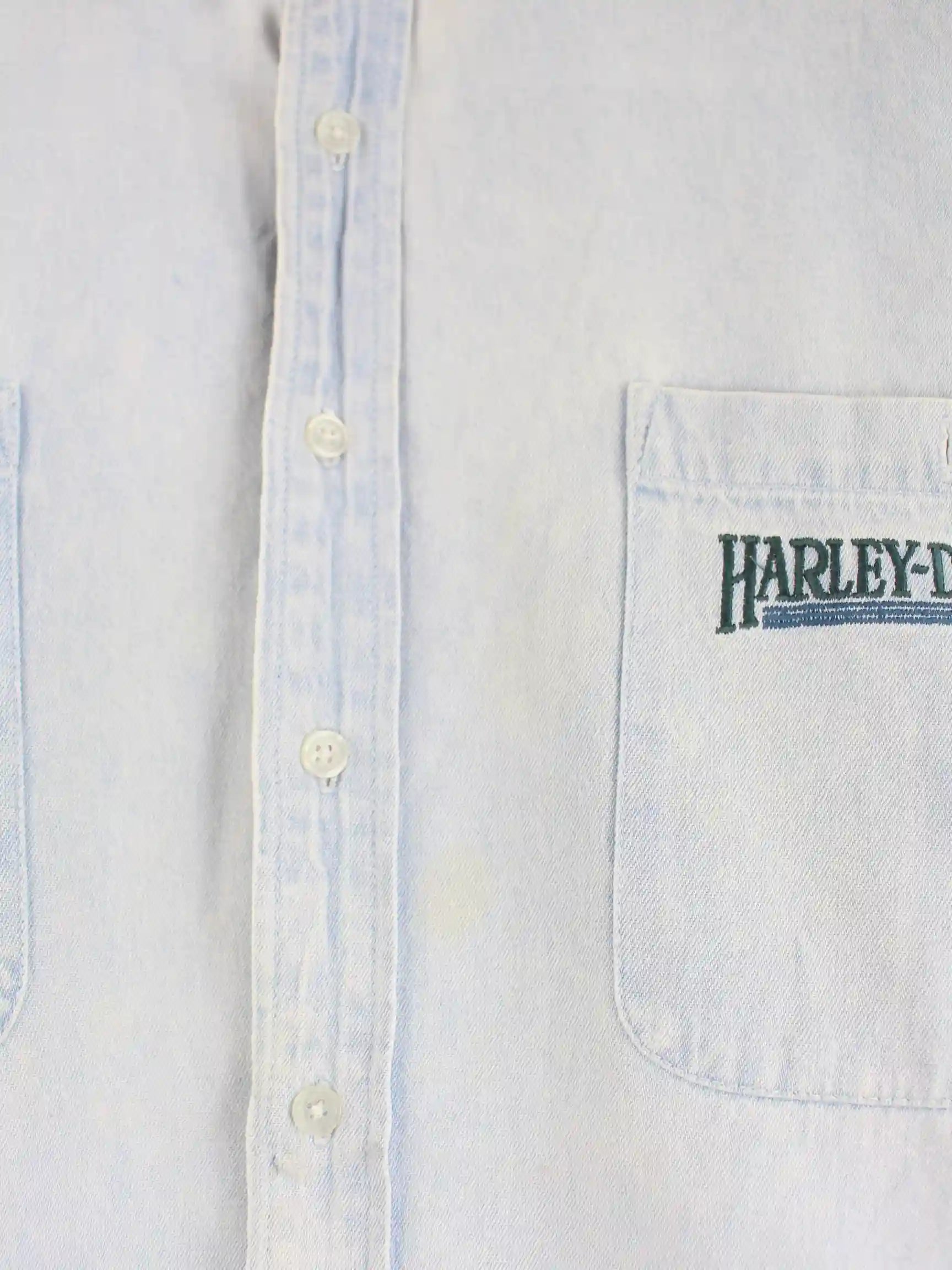 Freizeit Hemd des Labels Harley Davidson in Größe XL. Es ist aus Baumwolle produziert und in Blau in Stock.
