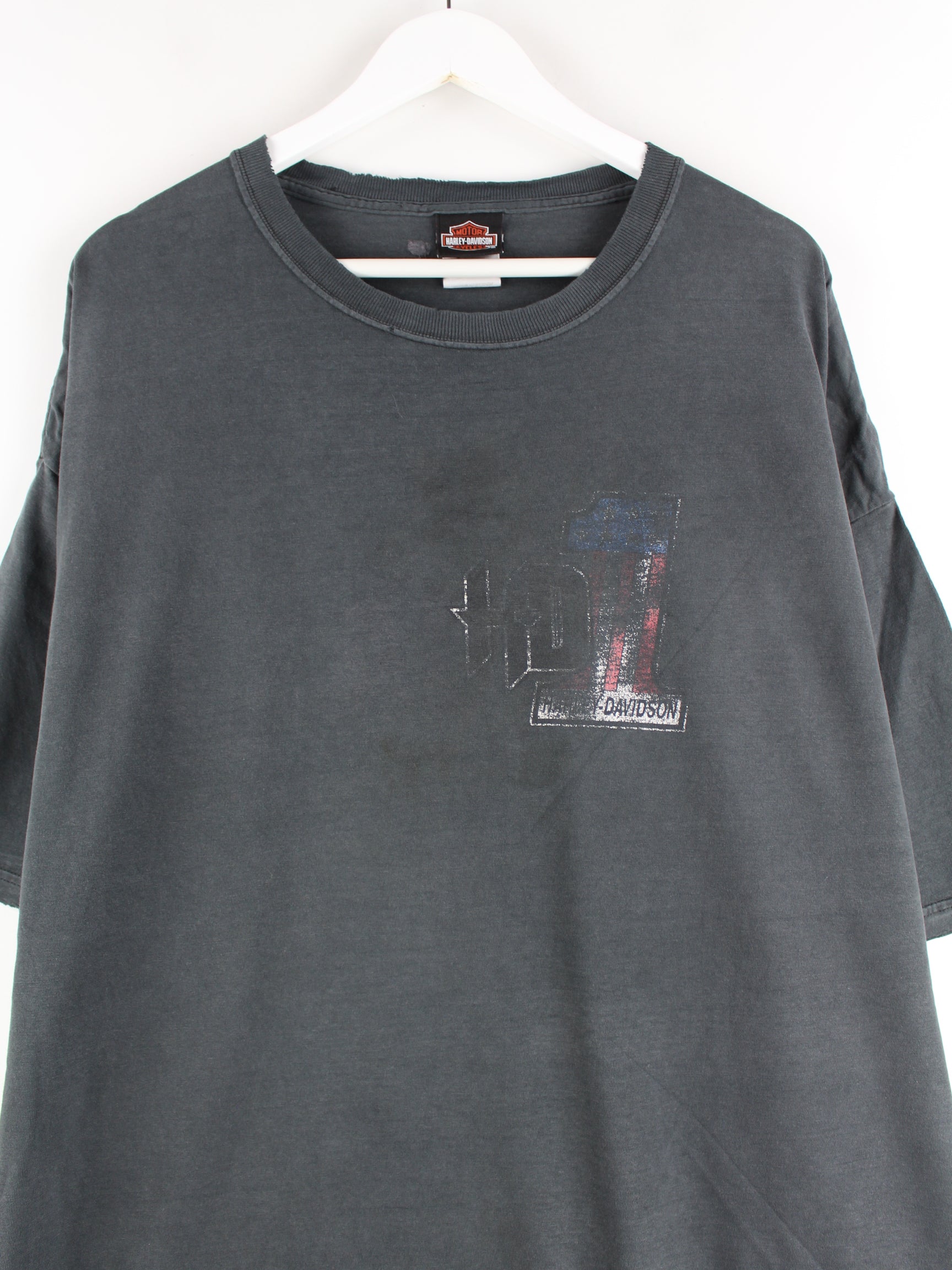 T-Shirt aus dem Hause Harley Davidson in Größe 4XL aus Anfang der 2000'er. Es ist aus Baumwolle hergestellt und in Grau im Angebot. Mit schickem y2k Print.