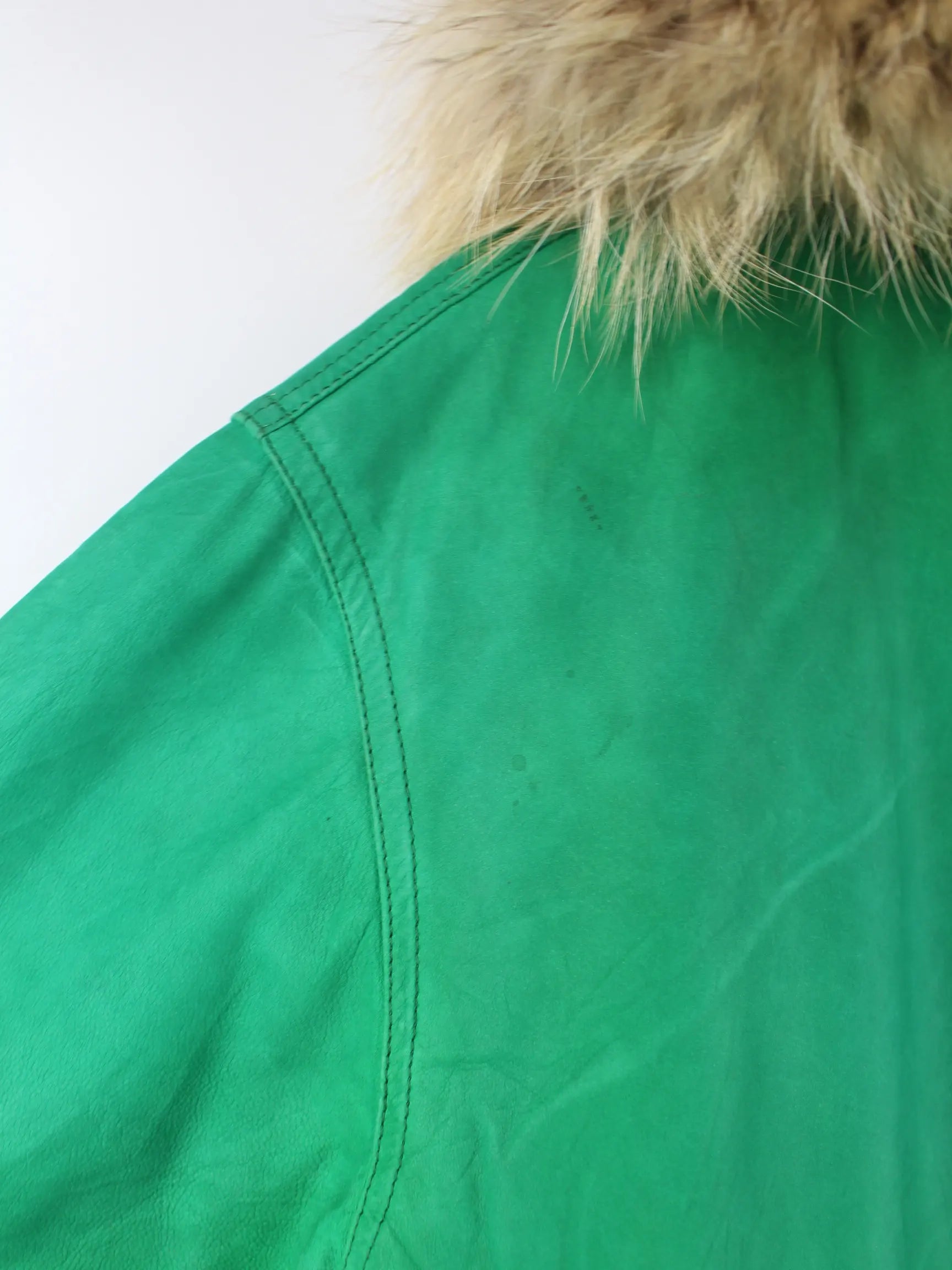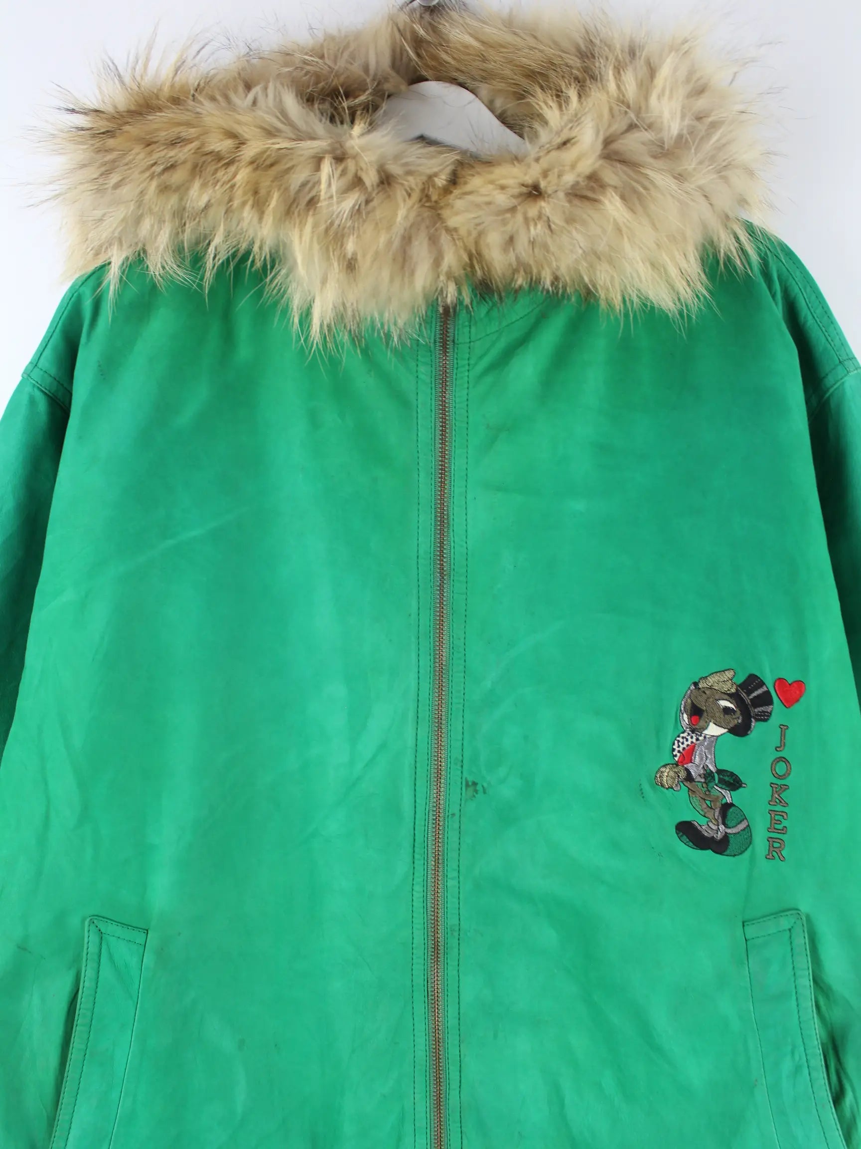 Iceberg 90s Vintage Jiminy Leder Parka Jacke Grün M