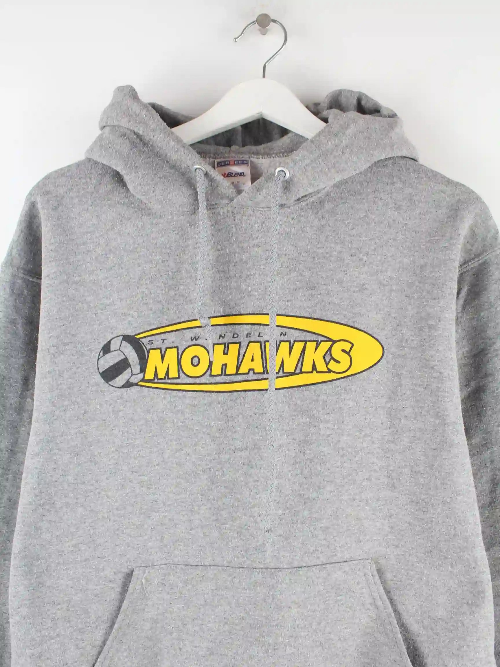 Grauer Hoodie vom Brand Jerzees in Größe M. Er ist aus einer Baumwollmischung angefertigt und in sehr gutem Zustand in Stock. Mit seltenem Mohawks Print.