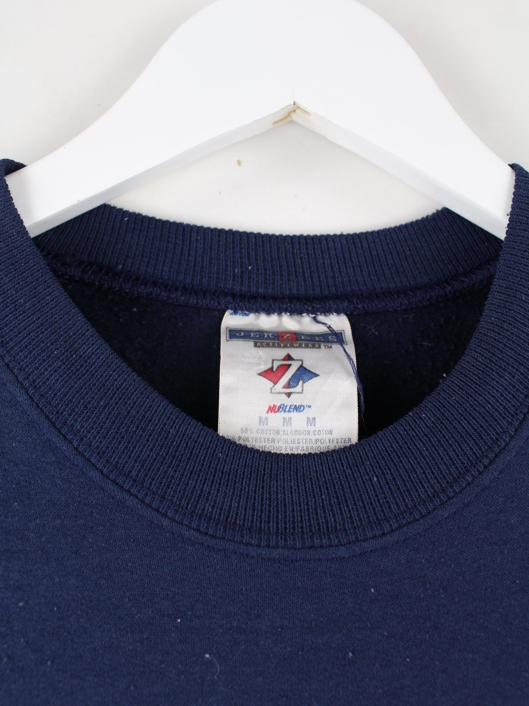 Blauer Sweater des Labels Jerzees in Größe M. Er ist aus einer Baumwollmischung angefertigt und in gutem Zustand lieferbar. Mit tollem Champions Print.
