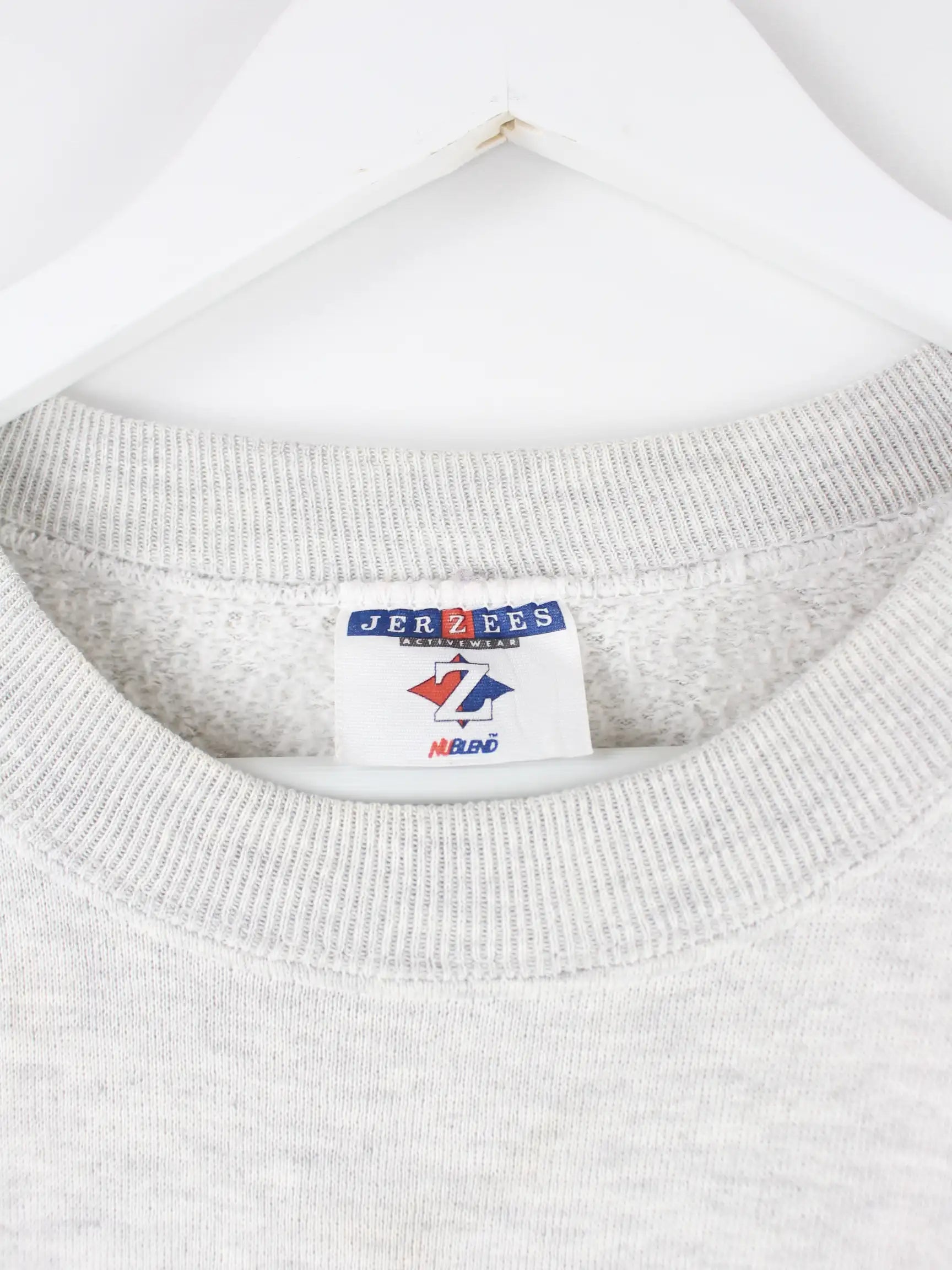 Grauer Sweater vom Brand Jerzees aus den 90'ern in Größe L. Er ist aus einer Baumwollmischung hergestellt. Den Zustand würden wir als 'In Ordnung' bezeichnen (vergl. Bilder).