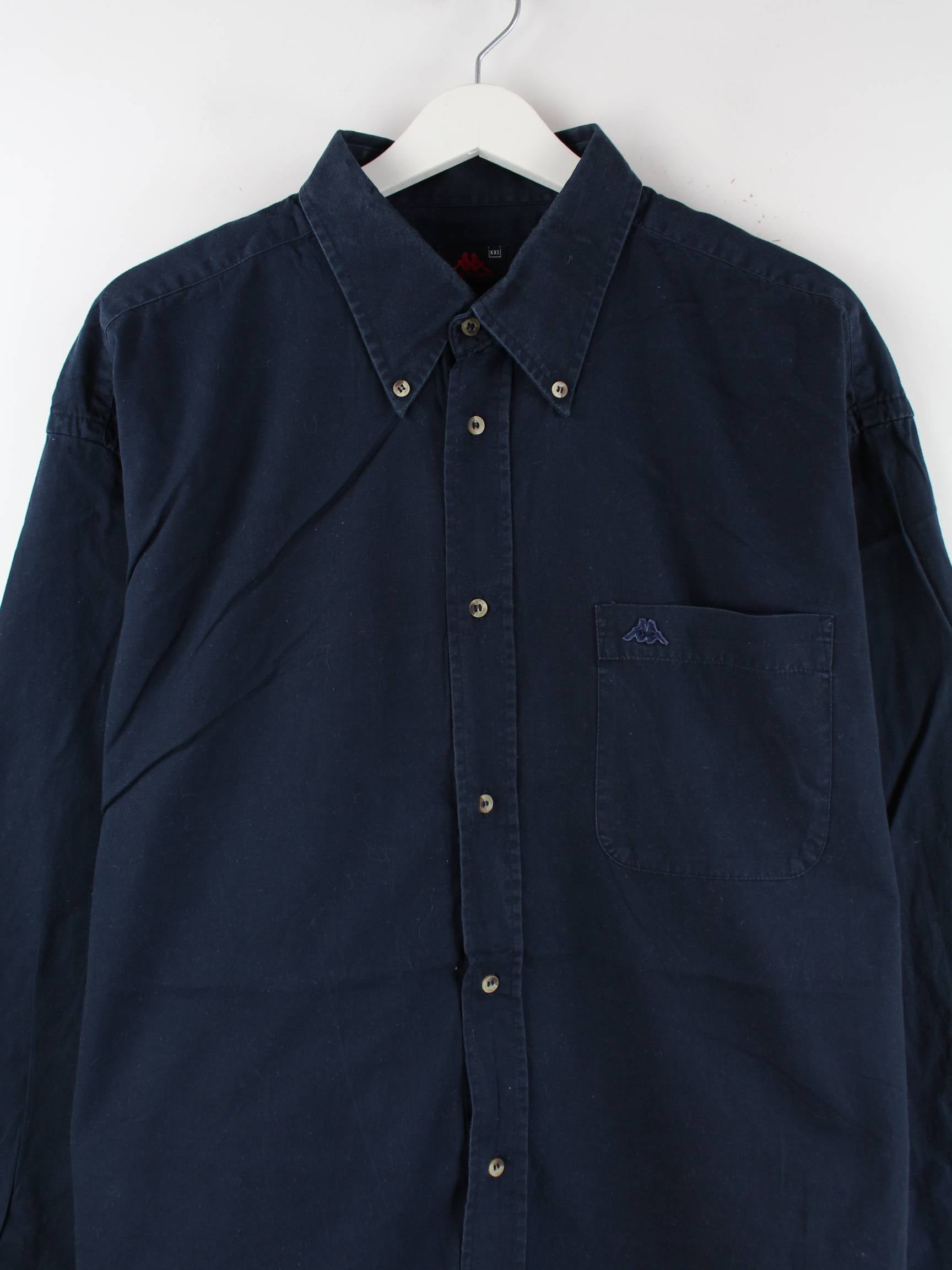 Hemd des Labels Kappa in Größe XXL aus den 90'ern. Es ist aus Baumwolle angefertigt und in Blau auf Lager.