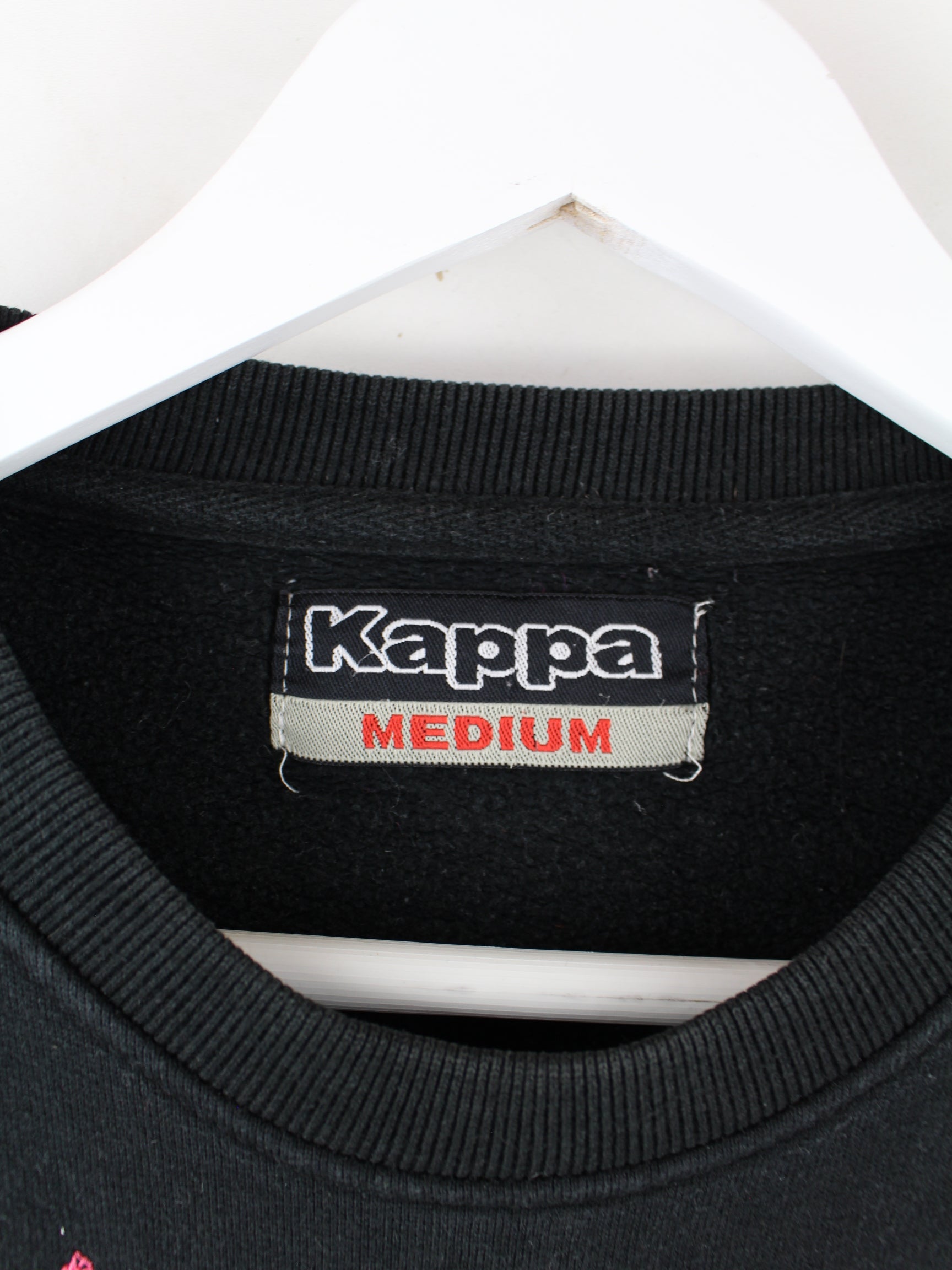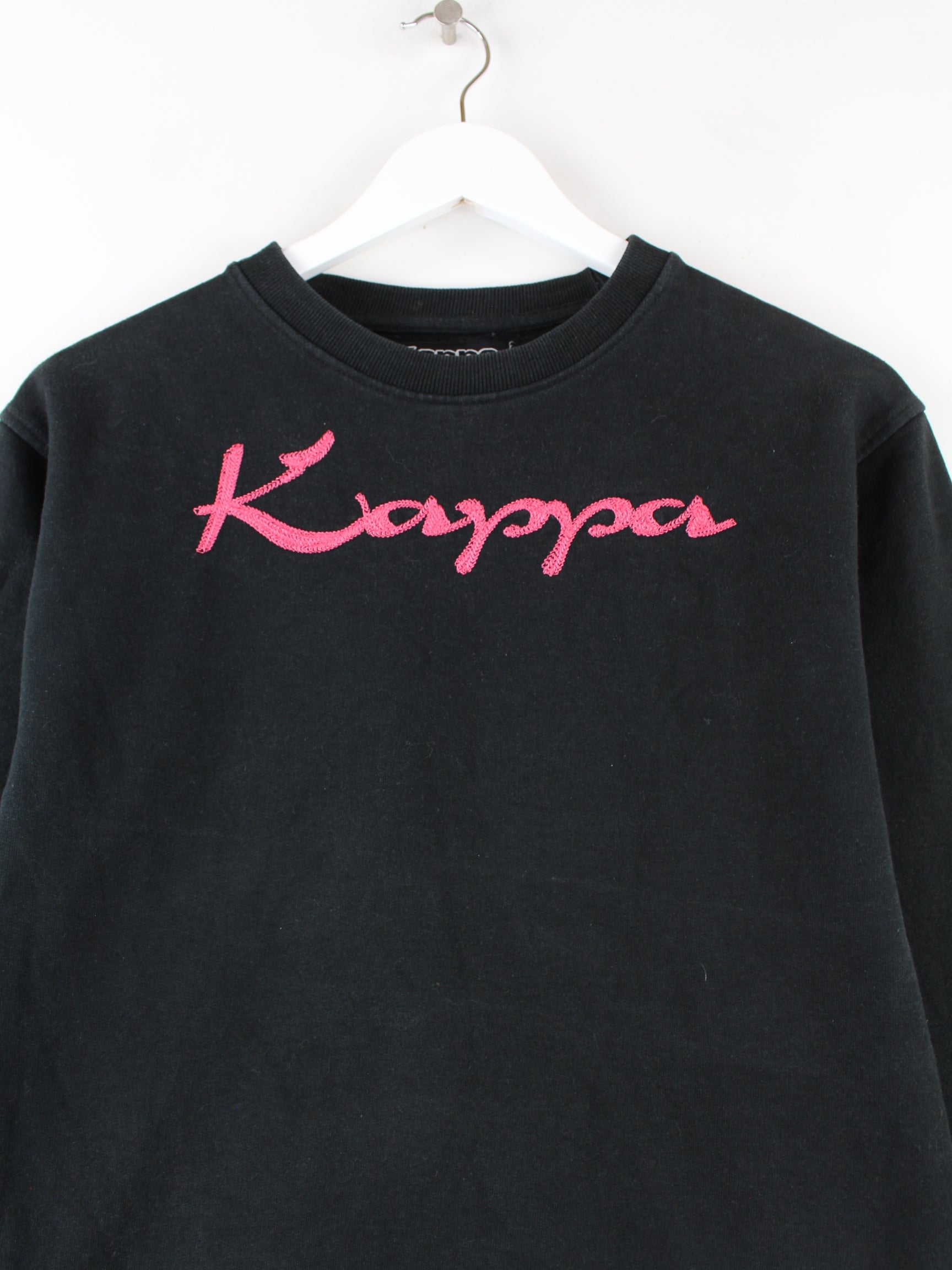 Schwarzer Sweater mit gestickten Motiven von Kappa in Größe M. Er ist aus einer Baumwollmischung gemacht und in gutem Zustand zu haben.