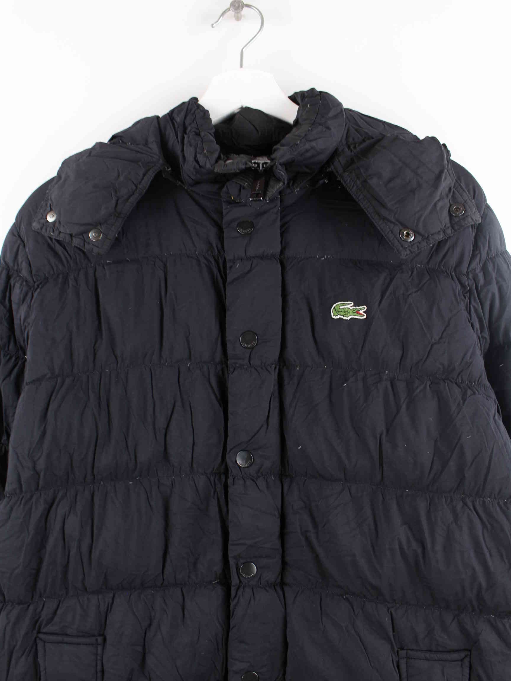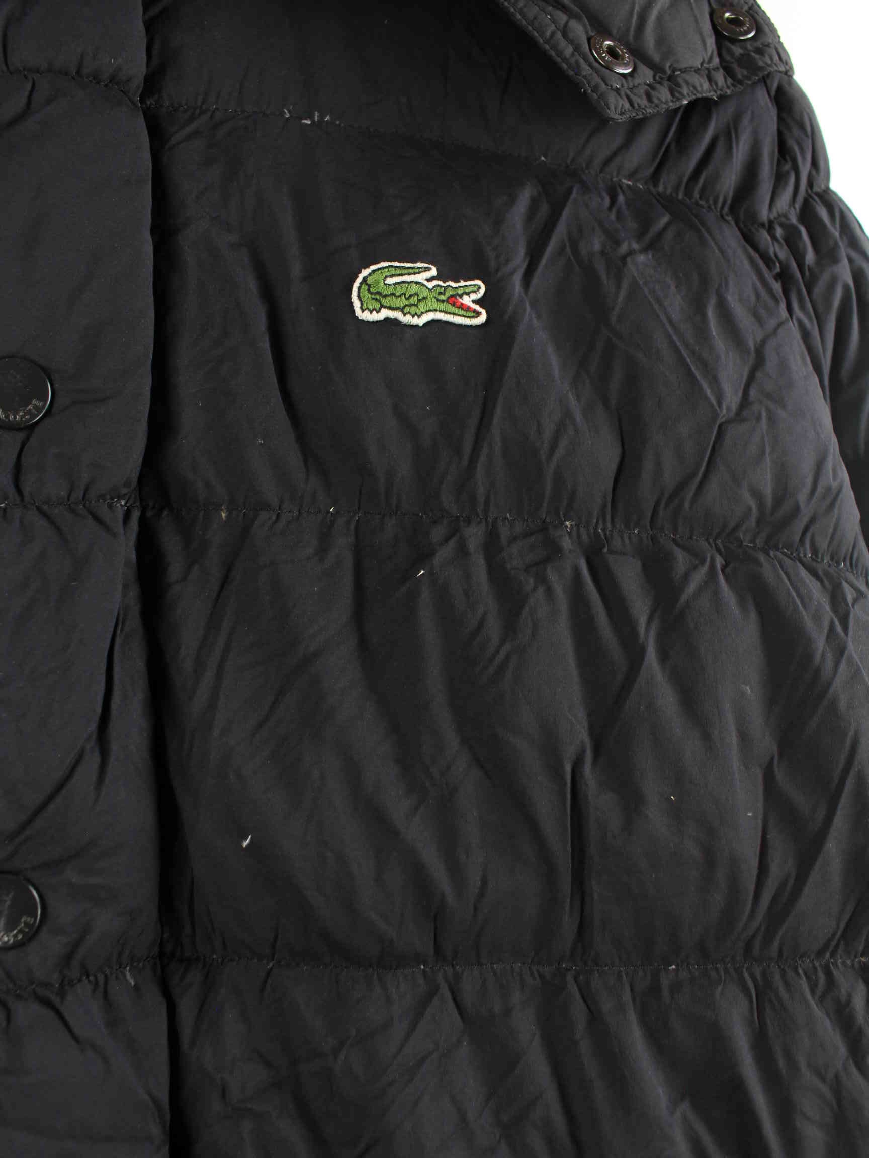 Schwarze Jacke der Brand Lacoste in Größe L. Sie ist aus Synthetik und in gutem Zustand lieferbar.