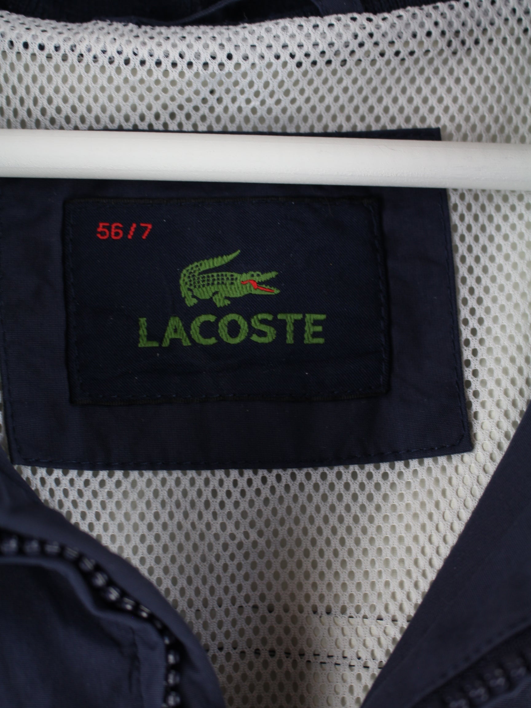 Leichte Jacke der Marke Lacoste in Größe XL. Sie ist aus Synthetik gefertigt und in Blau vorrätig.