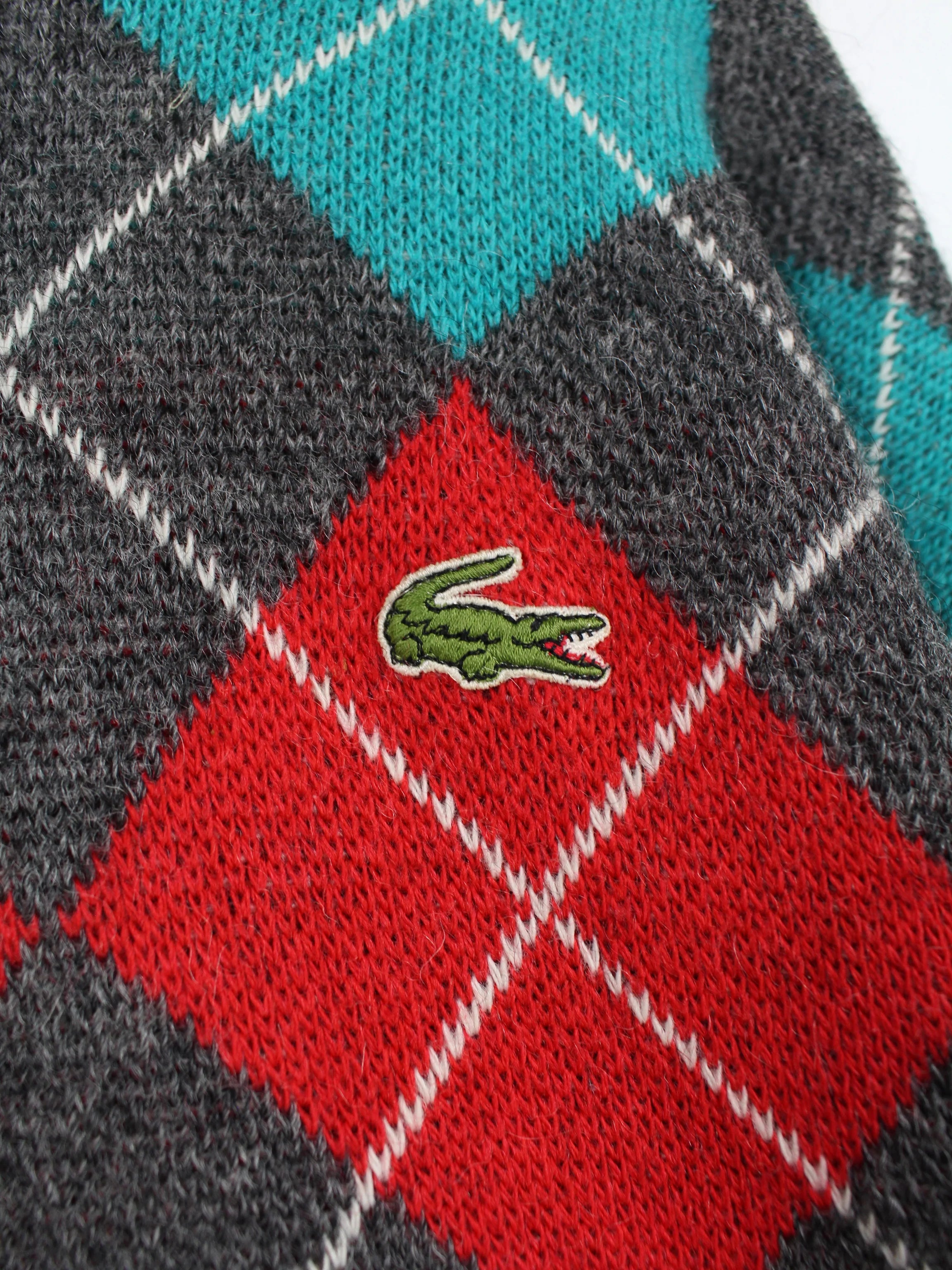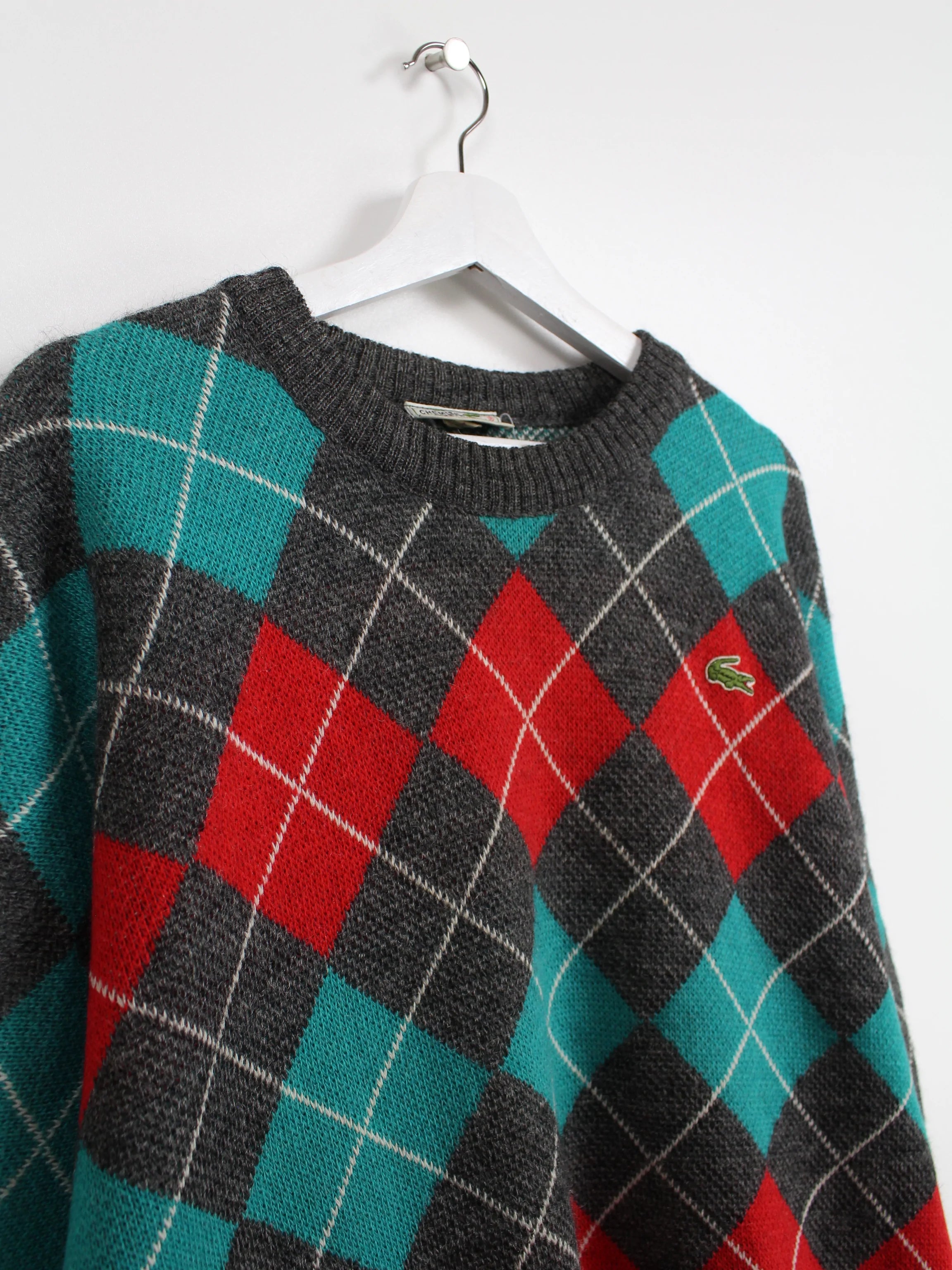 Pull chaud en laine Lacoste avec un motif à carreaux saisissant.