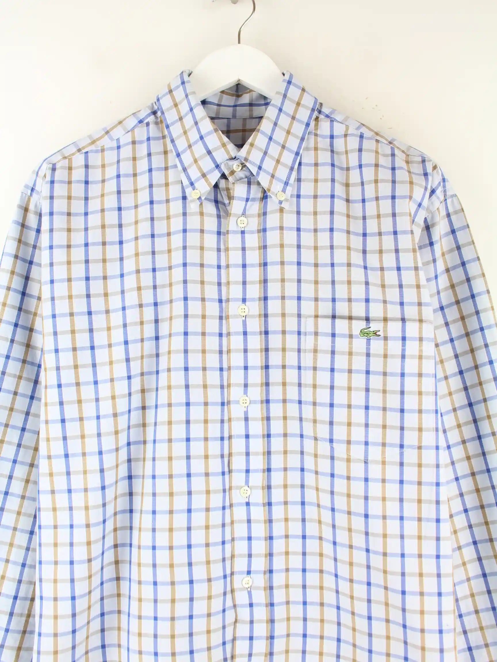 Blaues Hemd vom Brand Lacoste in Größe M. Es ist aus Baumwolle produziert und in gutem Zustand im Angebot.
