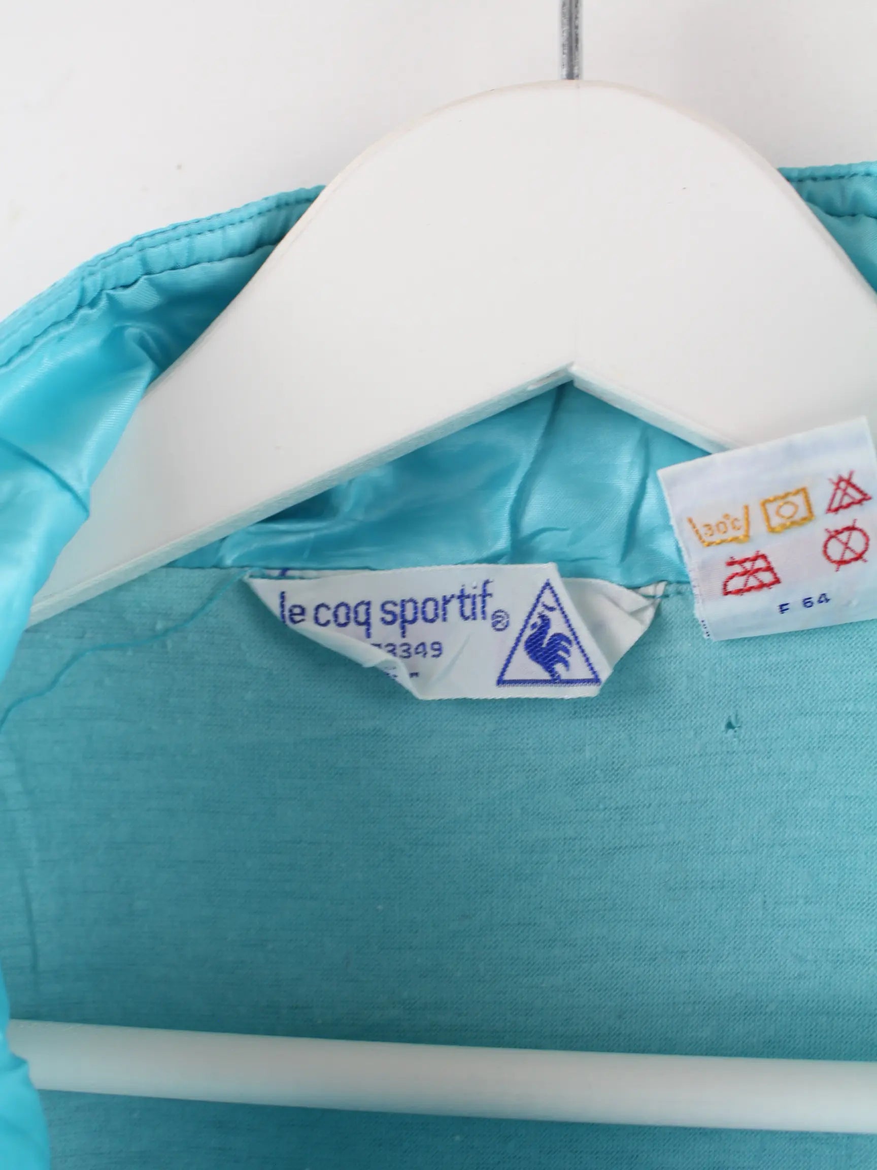 Trainingsjacke von Le Coq Sportif in Größe M aus den 80'ern. Sie ist aus Synthetik produziert und in Türkis lieferbar.