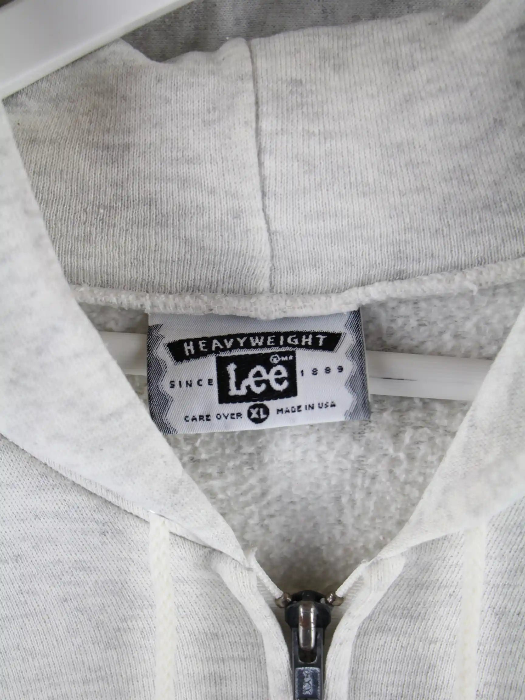 Hoodie der Marke Lee mit Zip in Größe XL. Er ist aus einer Baumwollmischung angefertigt und in Grau vorrätig.