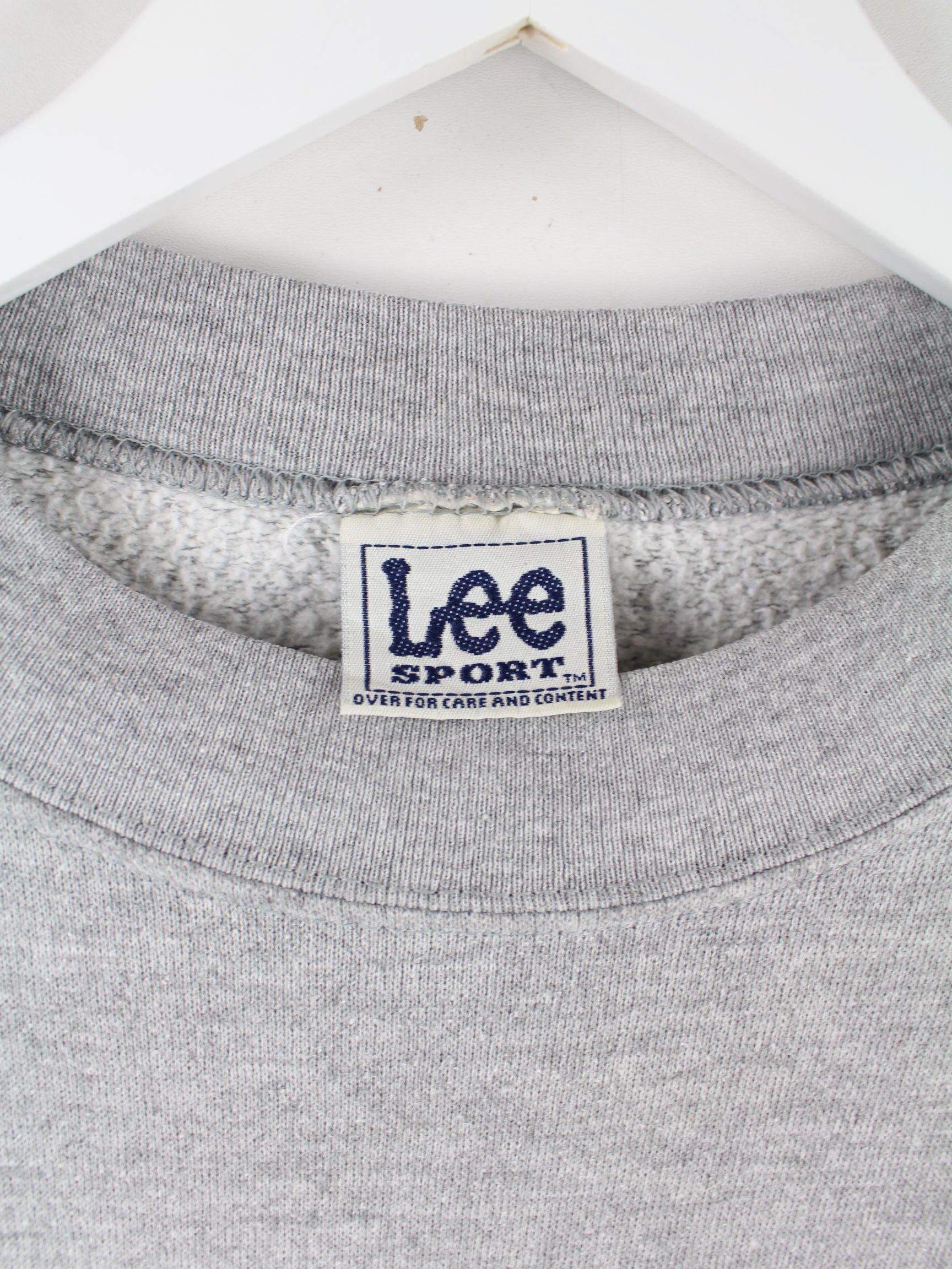 Grauer Sweater mit Stickereien vom Label Lee aus den 90'ern in Größe L. Er ist aus einer Baumwollmischung gemacht und in gutem Zustand im Bestand.