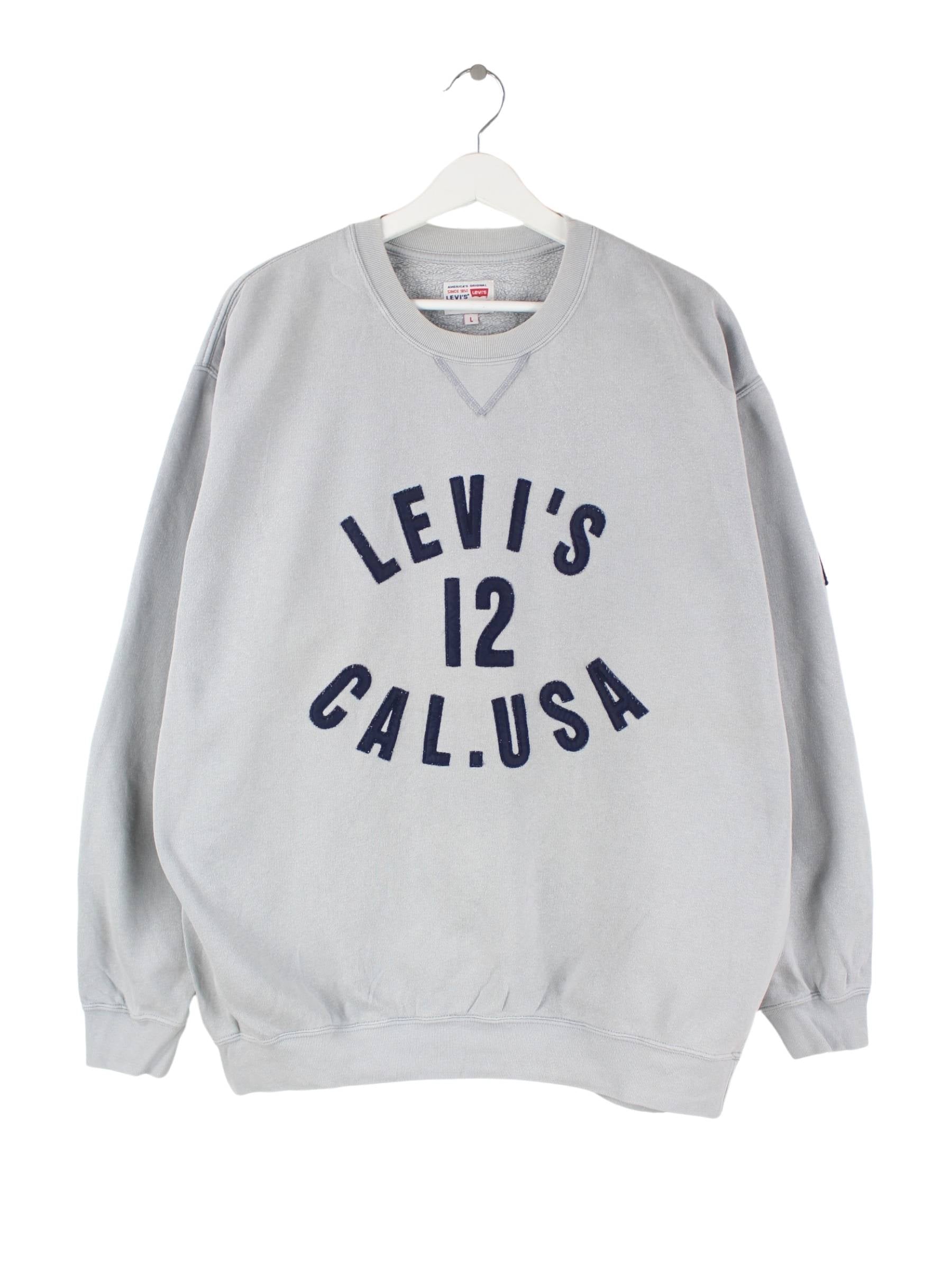 Blauer Sweater mit gesticktem Logo vom Label Levi's in Größe L. Er ist aus einer Baumwollmischung produziert und in sehr gutem Zustand in Stock.