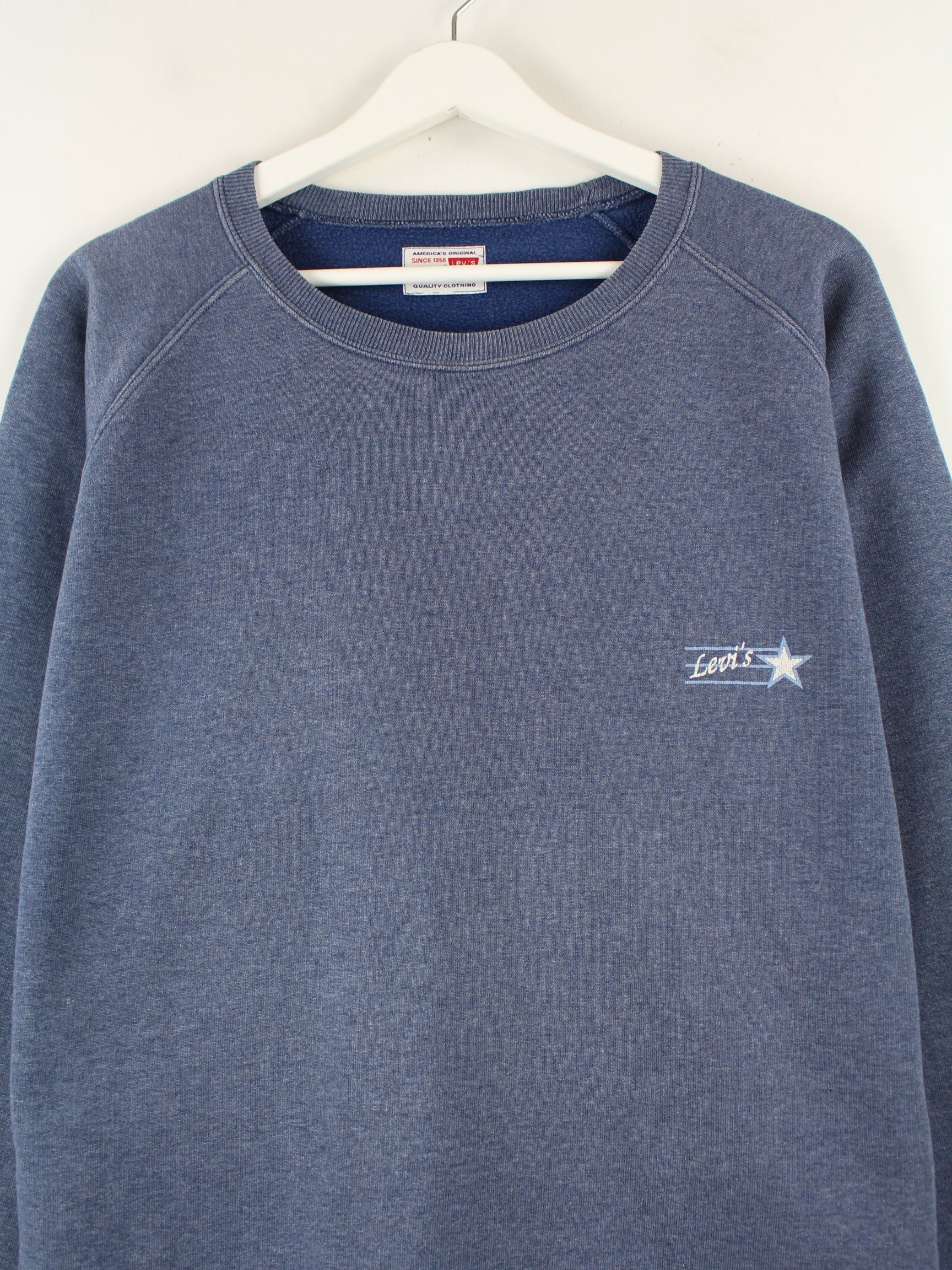 Blauer Sweater von Levi's in Größe XL. Er ist aus einer Baumwollmischung produziert und in gutem Zustand zu haben. Mit tollem 00s Print.