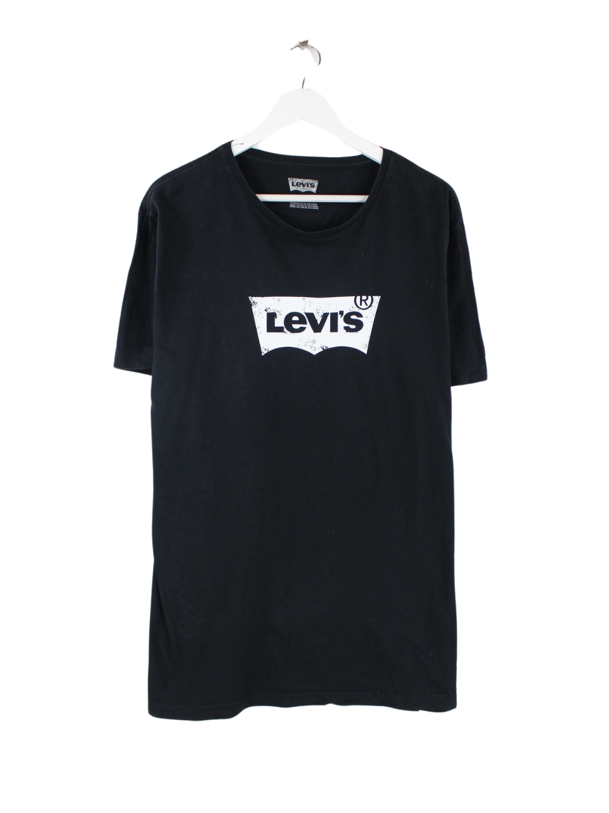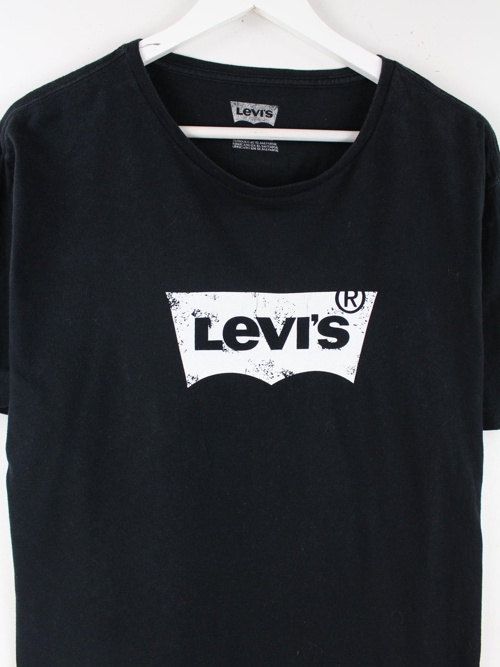 Schwarzes T-Shirt vom Brand Levi's in Größe L. Es ist aus Baumwolle gefertigt und in gutem Zustand im Bestand. Mit tollem Print.