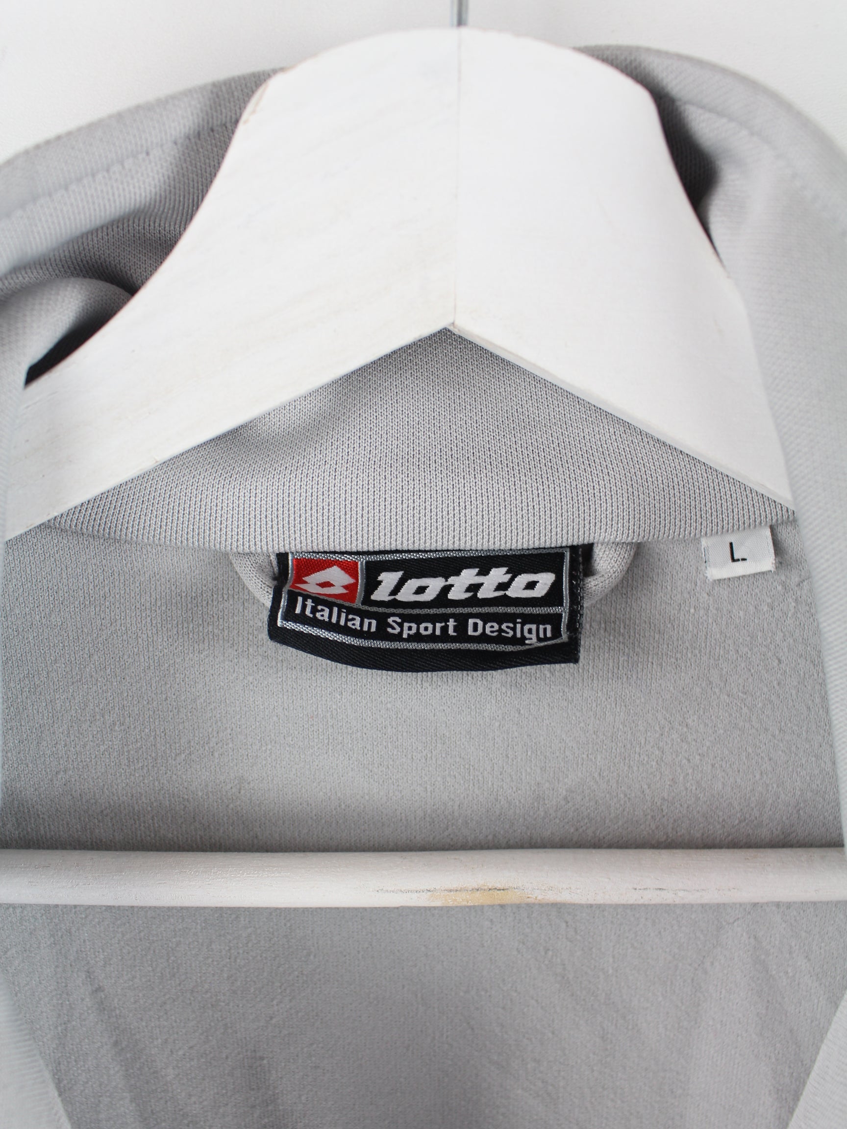 Graue Trainingsjacke des Labels Lotto aus den 90'ern in Größe L. Sie ist aus Synthetik gemacht und in sehr gutem Zustand im Bestand.