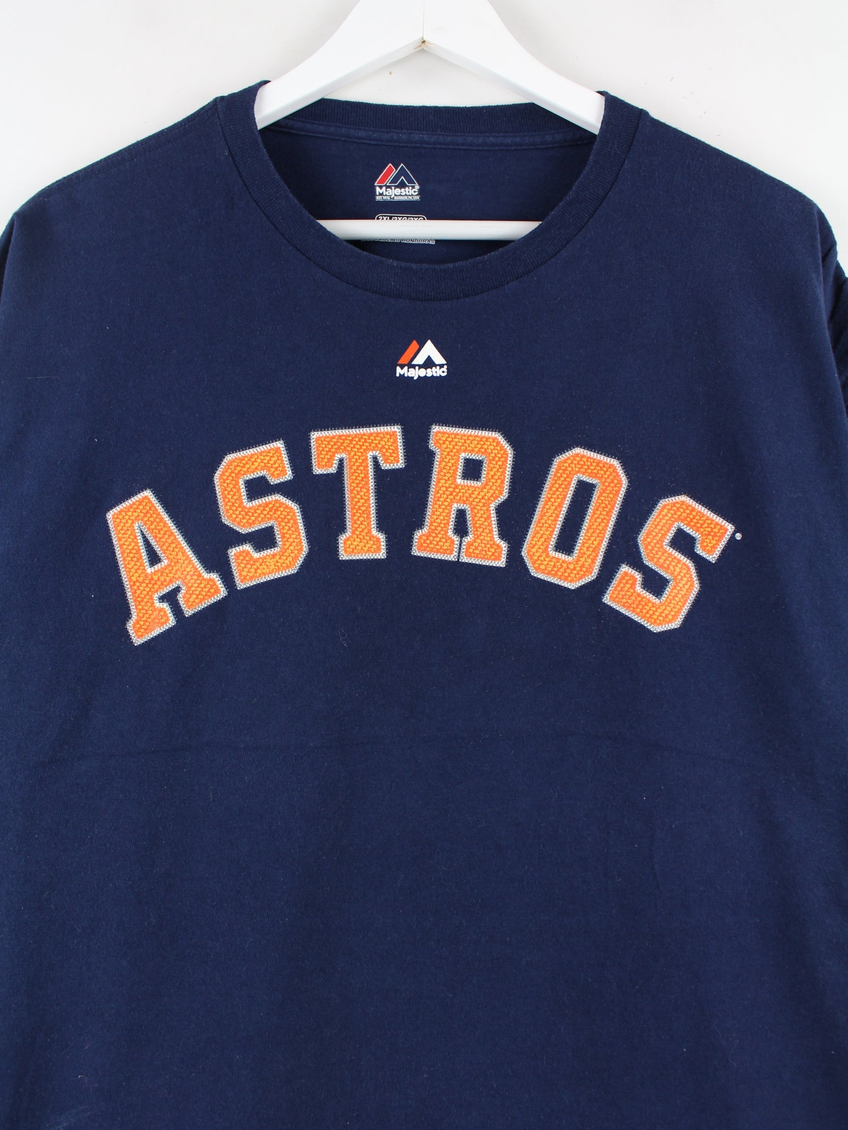 T-Shirt von Majestic in Größe XXL. Es ist aus Baumwolle angefertigt und in Blau in Stock. Mit tollem Astros Print.