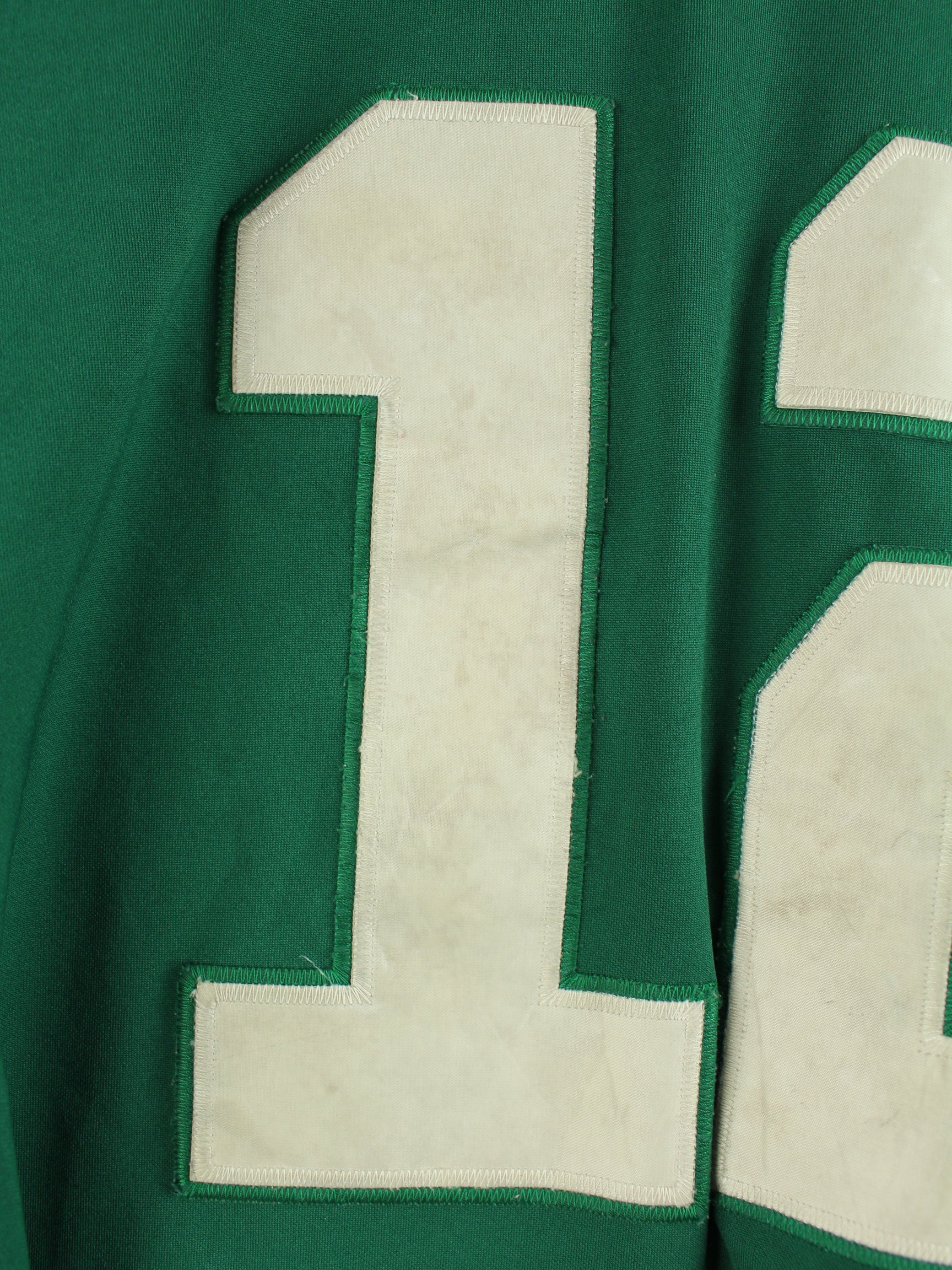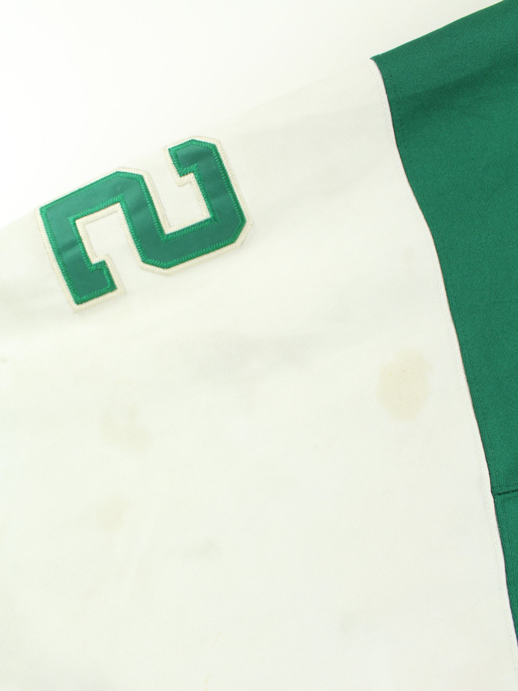 Grüner Jersey des Labels Mitchell & Ness aus den 90'ern in Größe 4XL. Es ist aus Synthetik gefertigt. Den Zustand würden wir als 'In Ordnung' bezeichnen (vergl. Bilder).