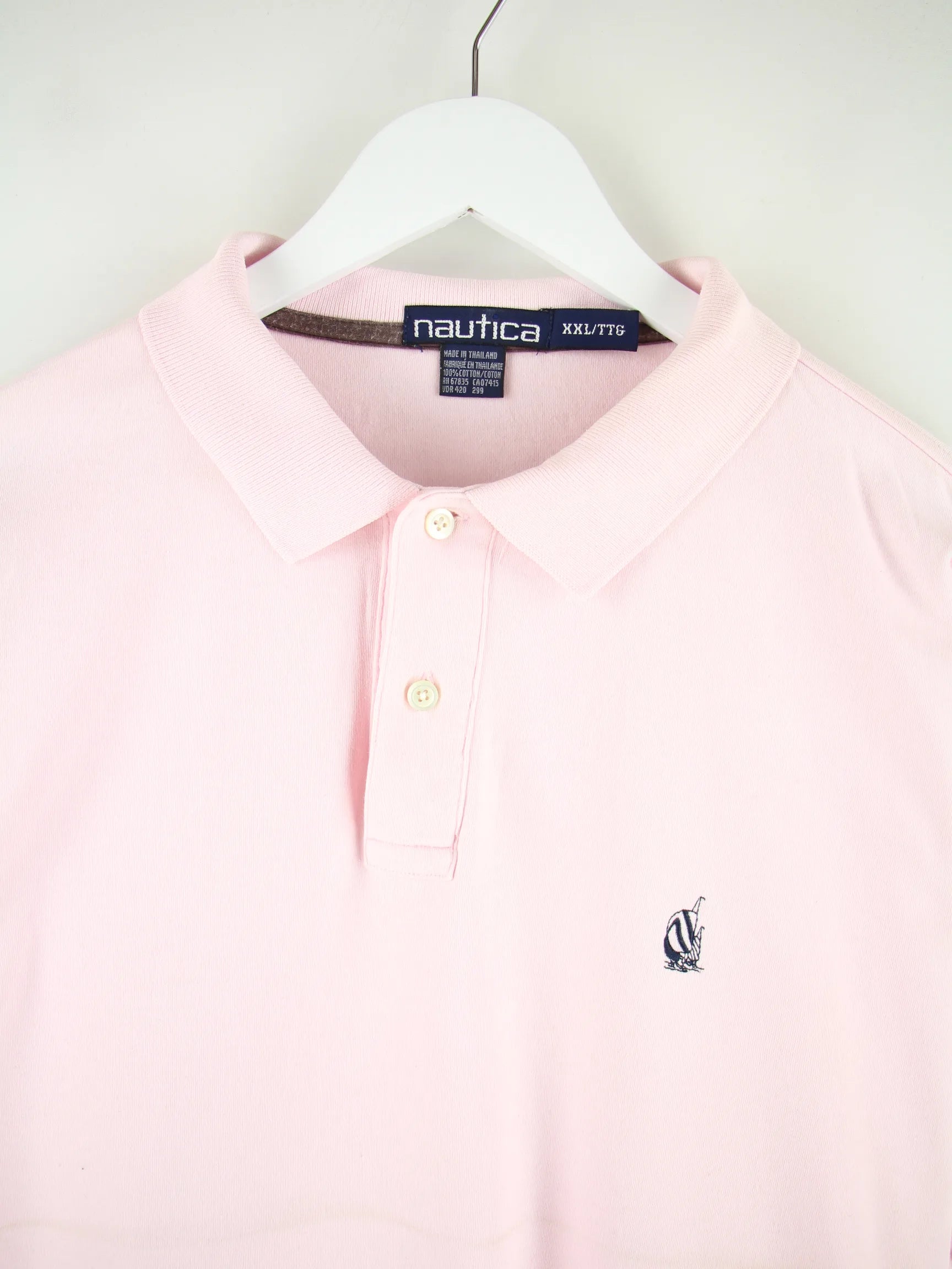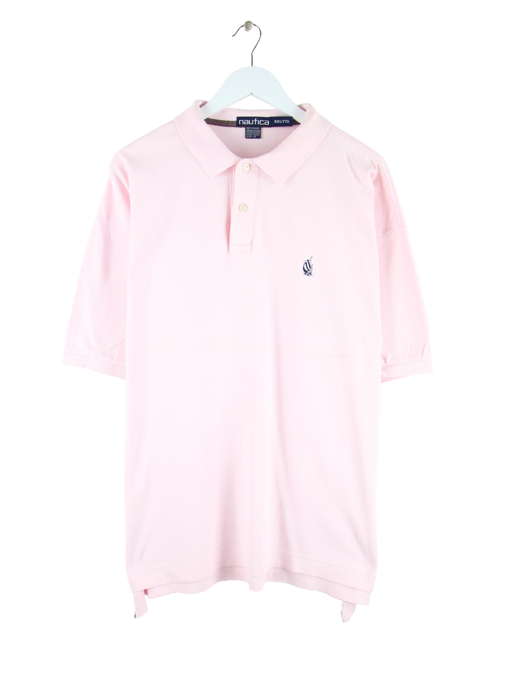 Rosafarbenes Poloshirt des Labels Nautica aus den 90'ern in Größe XXL. Es ist aus Baumwolle gemacht. Den Zustand würden wir als 'In Ordnung' bezeichnen (vergl. Bilder).