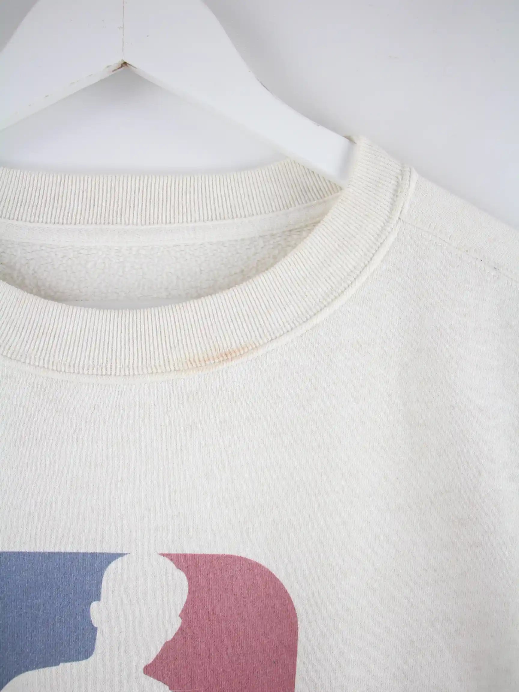 Sweater aus dem Hause NBA in Größe L. Er ist aus einer Baumwollmischung produziert und in Weiß vorrätig. Mit seltenem Logo Print.
