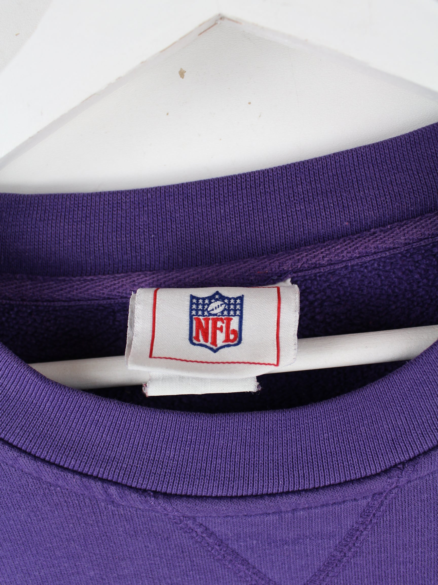 Sweater des Labels NFL mit gesticktem Logo in Größe XXL. Er ist aus einer Baumwollmischung hergestellt und in Lila bei uns vorrätig.