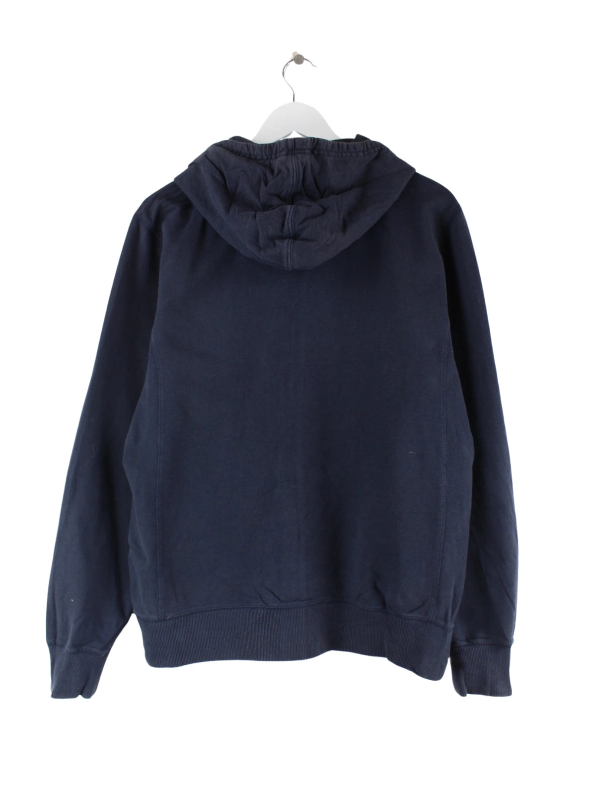 Schwarzer Hoodie mit Stick und Zip von Nike in Größe M. Er ist aus einer Baumwollmischung und in gutem Zustand bei uns zu bekommen.