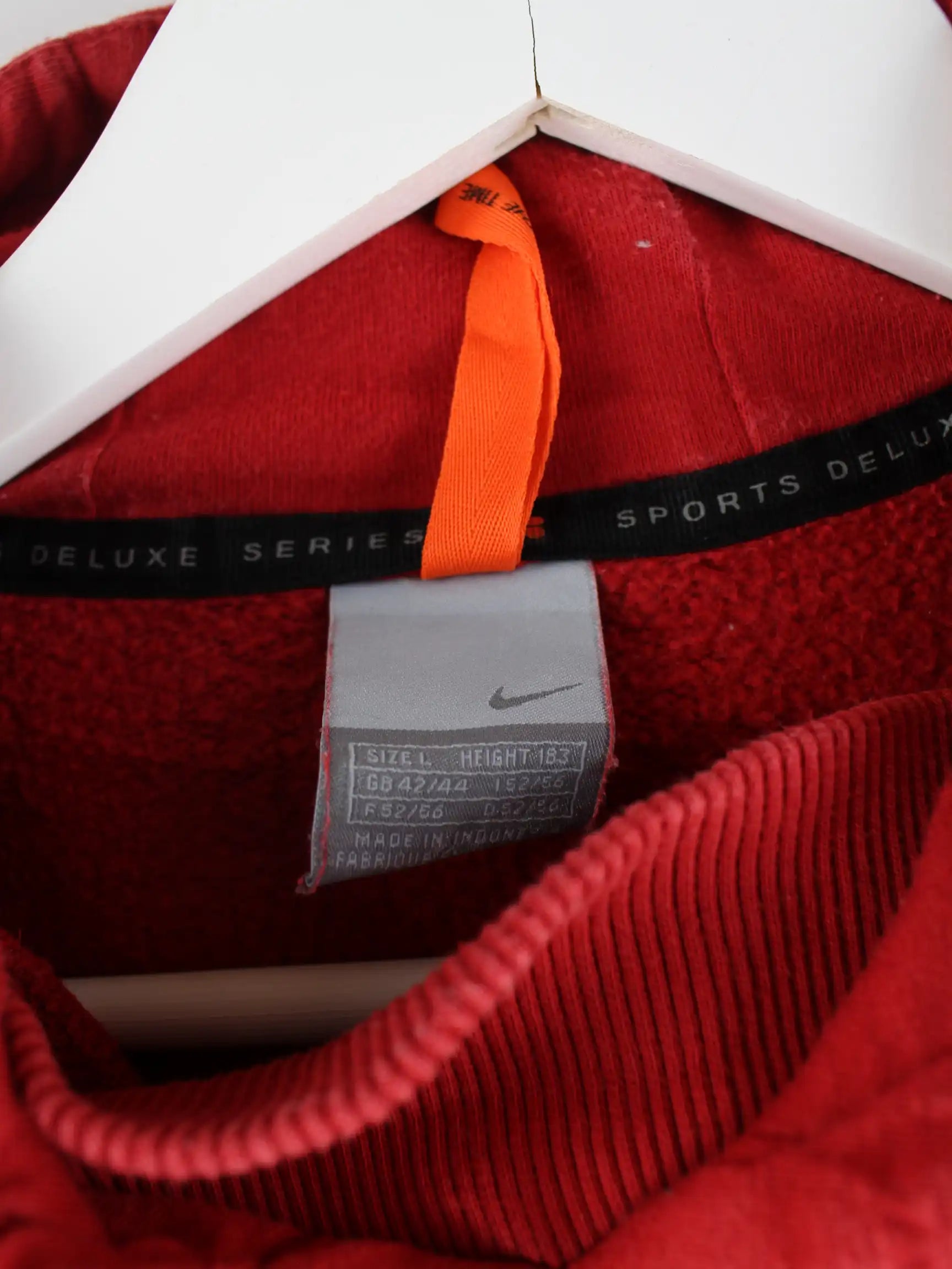 Roter Hoodie der Marke Nike in Größe L. Er ist aus einer Baumwollmischung und in gutem Zustand in Stock.